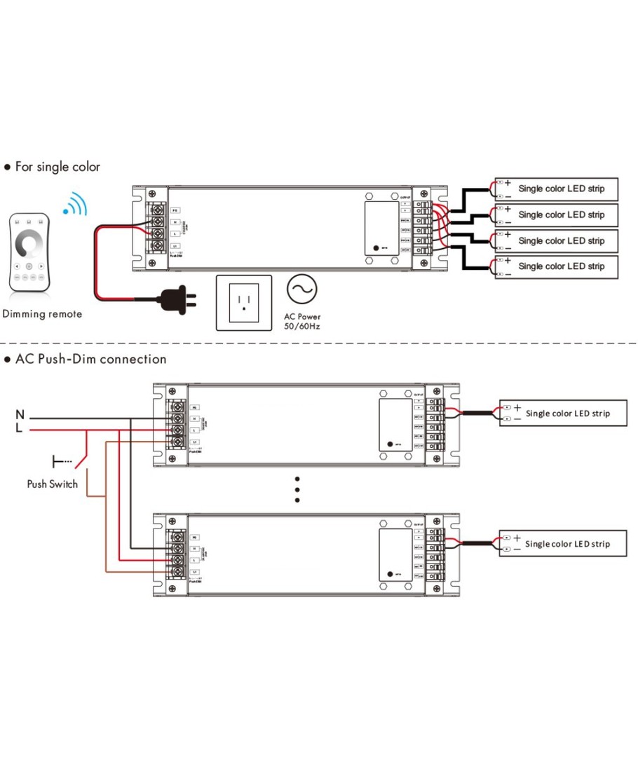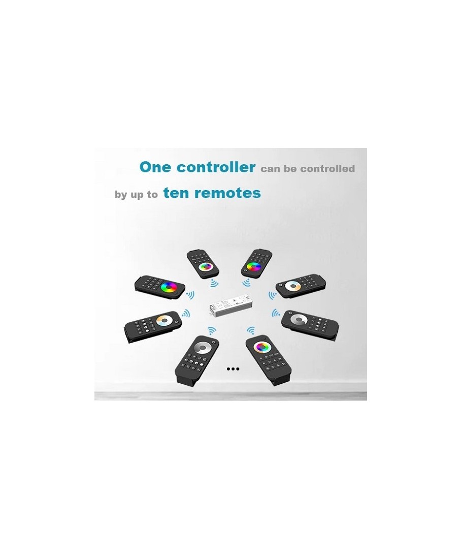 Styr 12V, 24V, 230V och dimning, CCT, RGB - allt med samma fjärrkontroll.