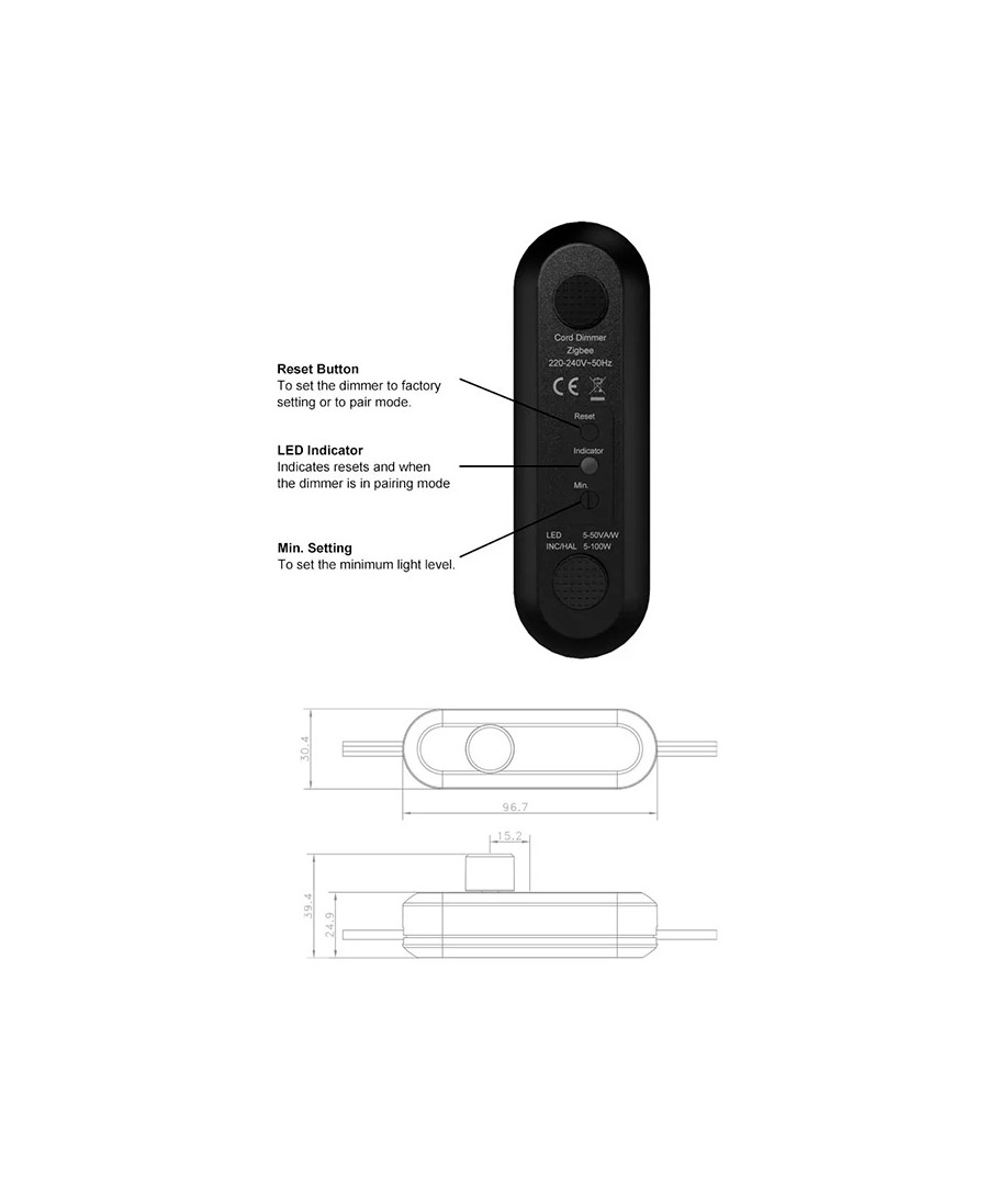 Dimmern kan monteras direkt på sladden av en lampa, och den kan styras antingen via Zigbee genom t.ex. Philips Hue, eller direkt via vridknappen på själva enheten. Den diskreta storleken gör det enkelt att placera den var som helst, utan att den stör det estetiska uttrycket.