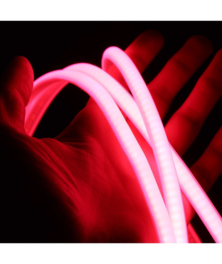Denna 5 meter långa röda neon COB-strip erbjuder en energiförbrukning på 11,5W per meter och är speciellt framtagen för att anslutas till 230V. Med sina 288 lysdioder och en bred spridning på 120 grader, garanterar den en jämn och effektiv ljusfördelning i varje miljö.
