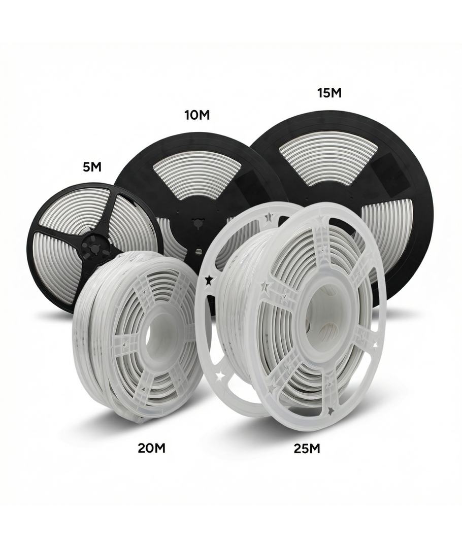 Denna vattentäta slim COB LED-strip på 230V levererar ett kraftigt, jämnt ljus helt utan synliga dioder. Det betyder att du får ett elegant ljusband utan hål i ljuset – och eftersom strippen körs direkt på 230V, finns det inget behov av transformator. Monteringen är enkel med den förmonterade tejpen på baksidan, och du kan beställa den i upp till 50 meter i ett sammanhängande stycke.