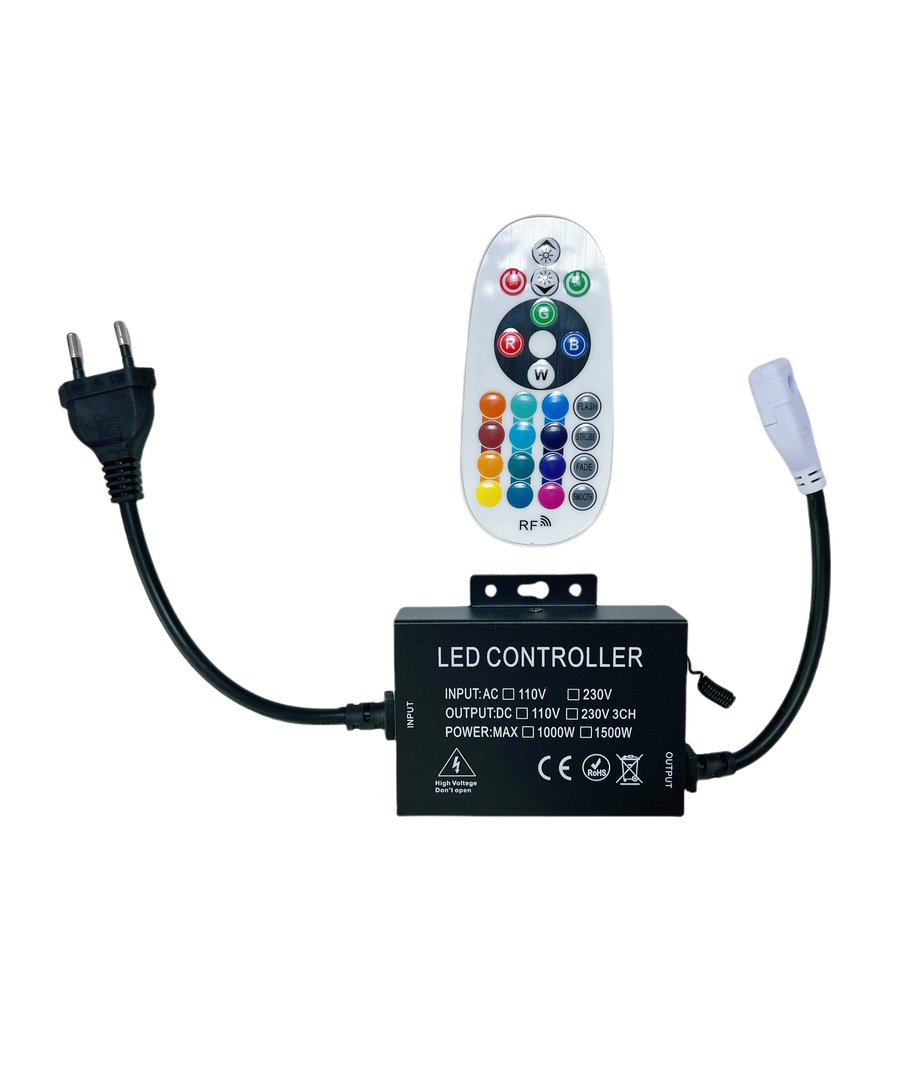 RGB Controller för 230V LED-strips som klarar en maxbelastning på 100 meter.
