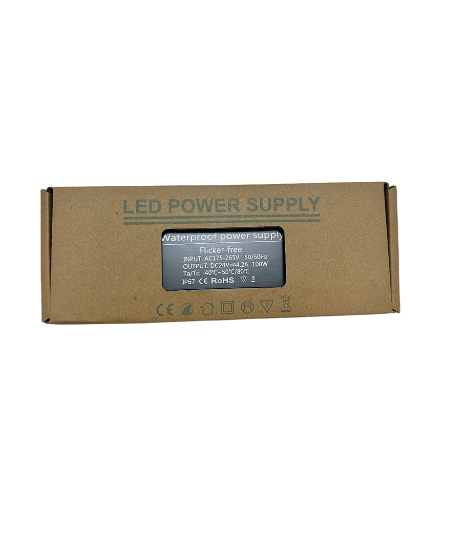 Den nya 100W strömförsörjningen 24V DC - 4.1A levererar pålitlig ström utan att flimmer och är perfekt för både inomhus- och utomhusbruk tack vare sin IP67-certifiering.