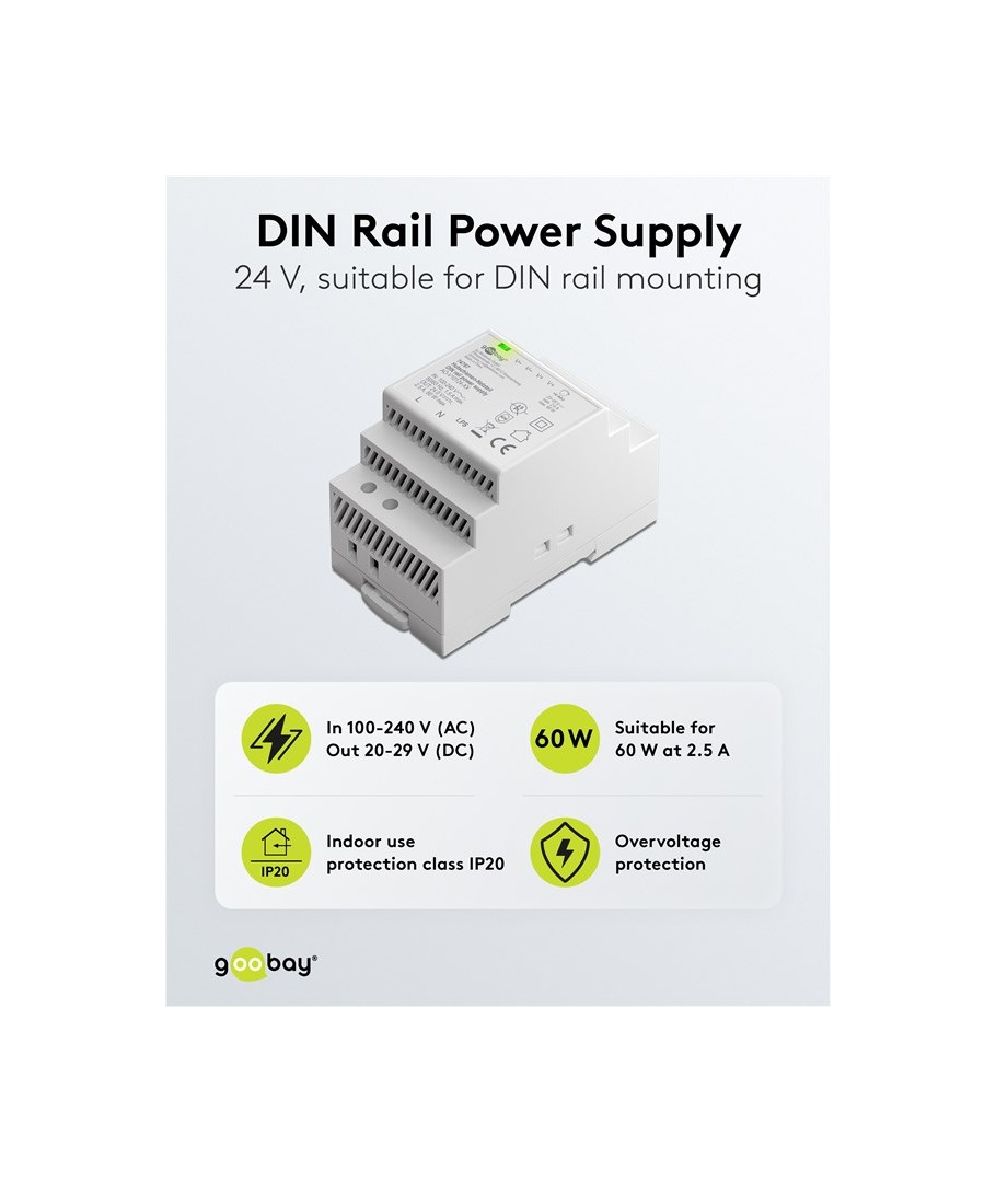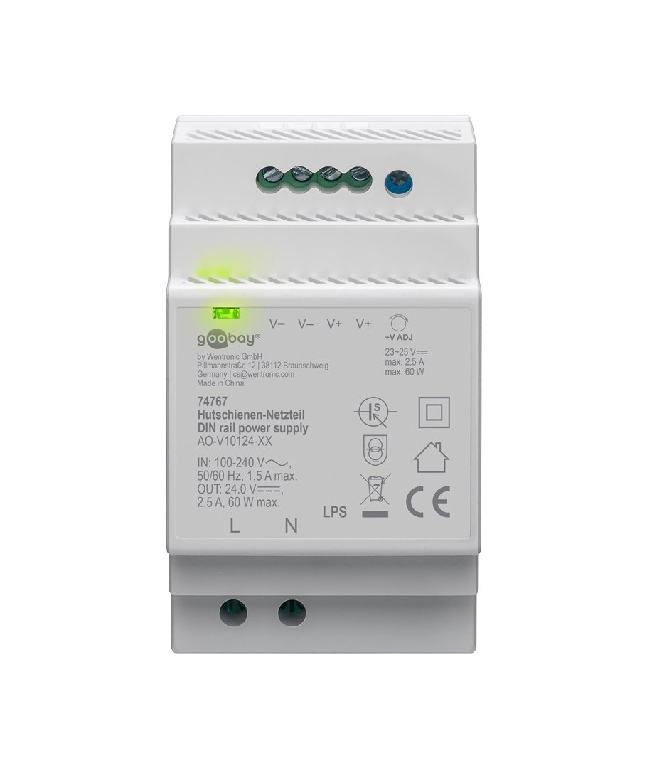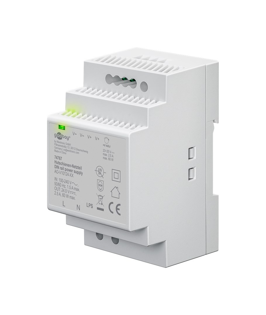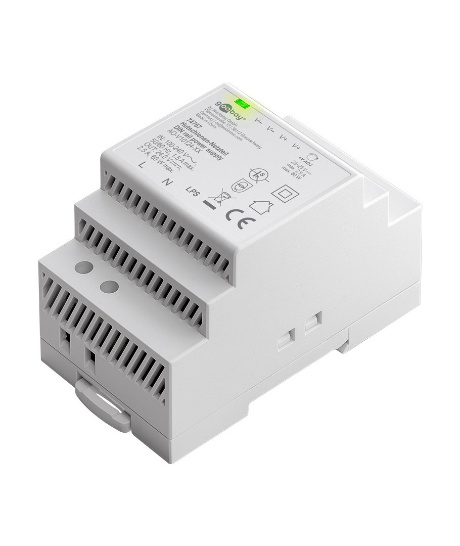 24V DC 2,5A strömförsörjning för DIN-skena montering.