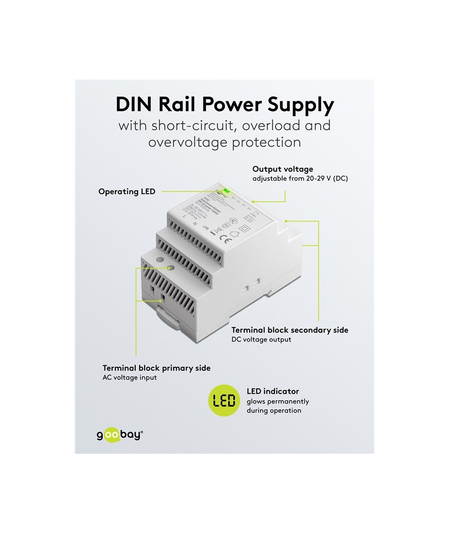 Perfekt för 24V LED-lampor, spotlights, dörrkameror, automatisering mm.