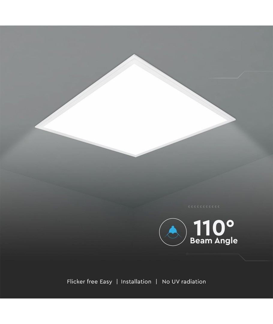 Med en ljusstyrka på 3960 lm och en imponerande spridningsvinkel på 110 grader, säkerställer denna panel en jämn och konsistent ljusdistribution över hela rummet. Den höga ljuskvaliteten med ett RA-värde på 80-85 garanterar ett naturligt och vackert ljus som korrekt återger alla färger.