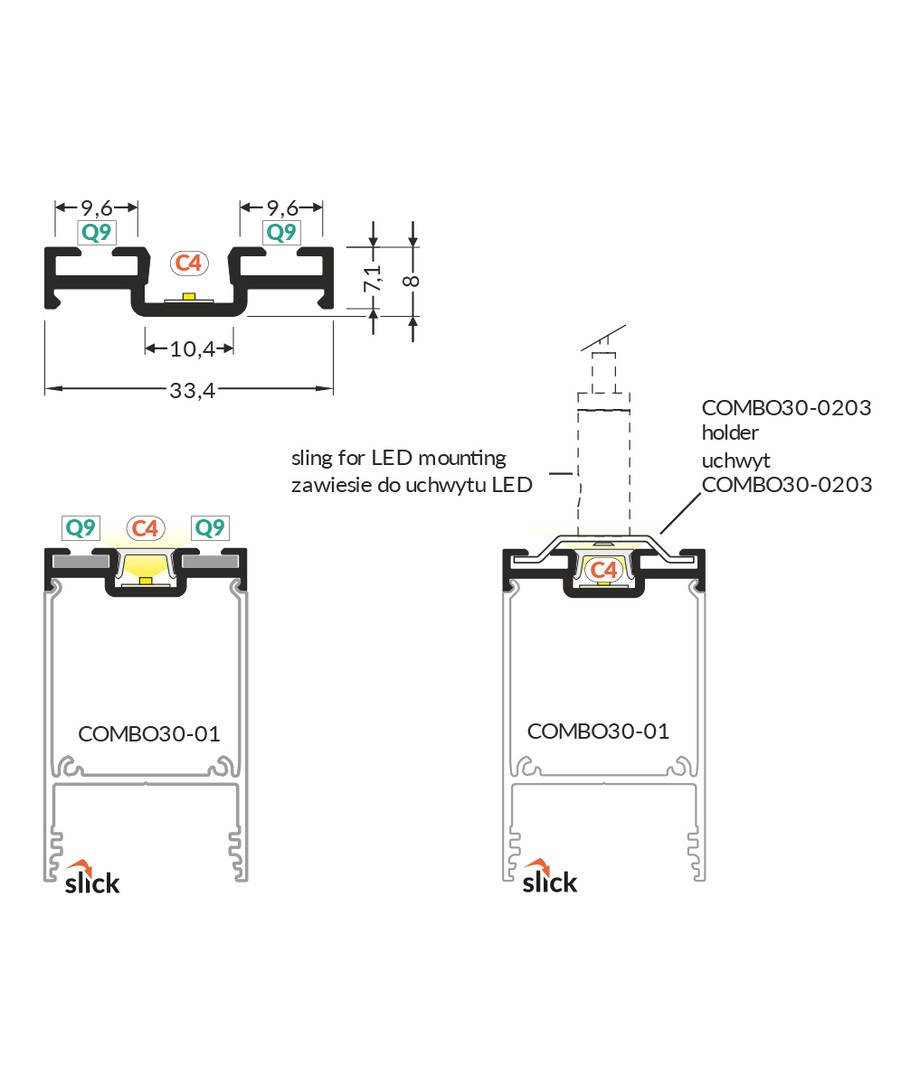 1m tillbehörsprofil COMBO30-03 C4/Q9