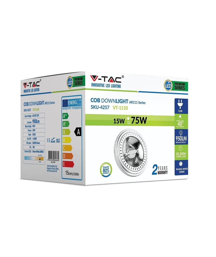 V-Tac 15W LED spotlight är en hållbar och miljövänlig belysning som både är optimal för din ekonomi och för miljön.