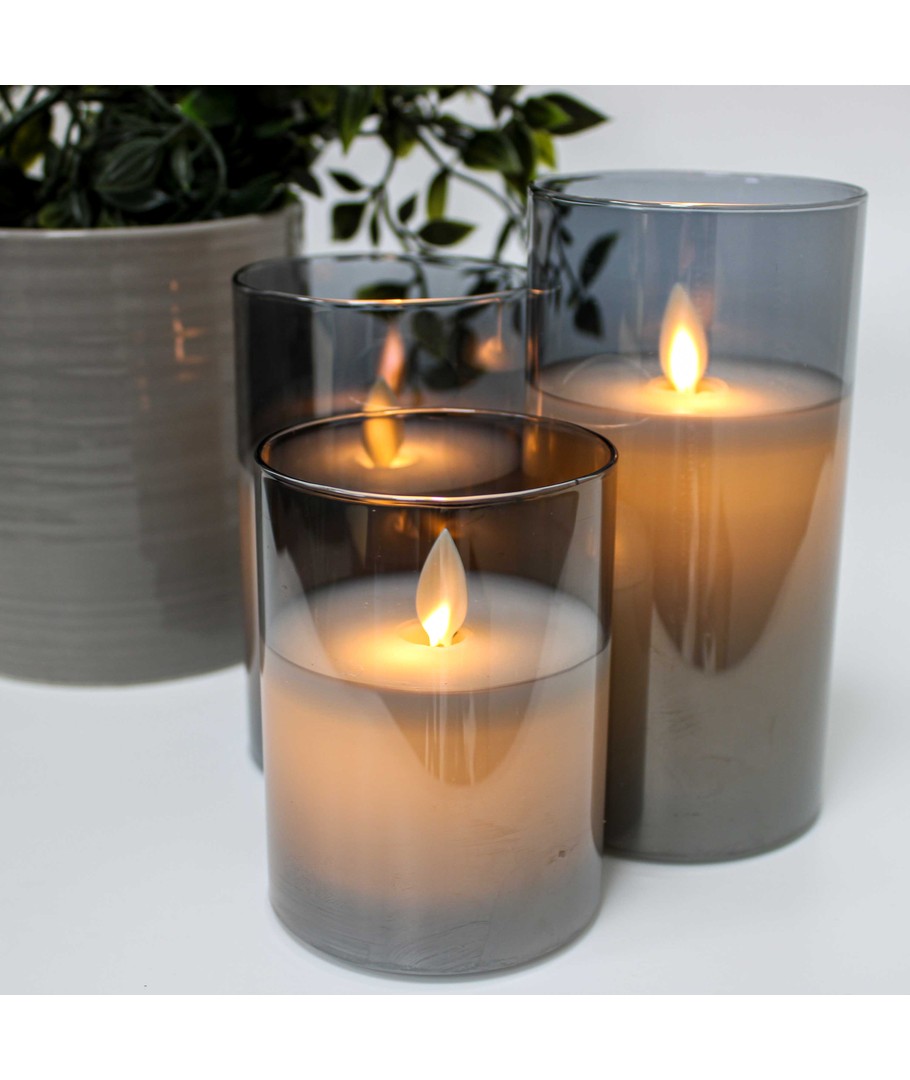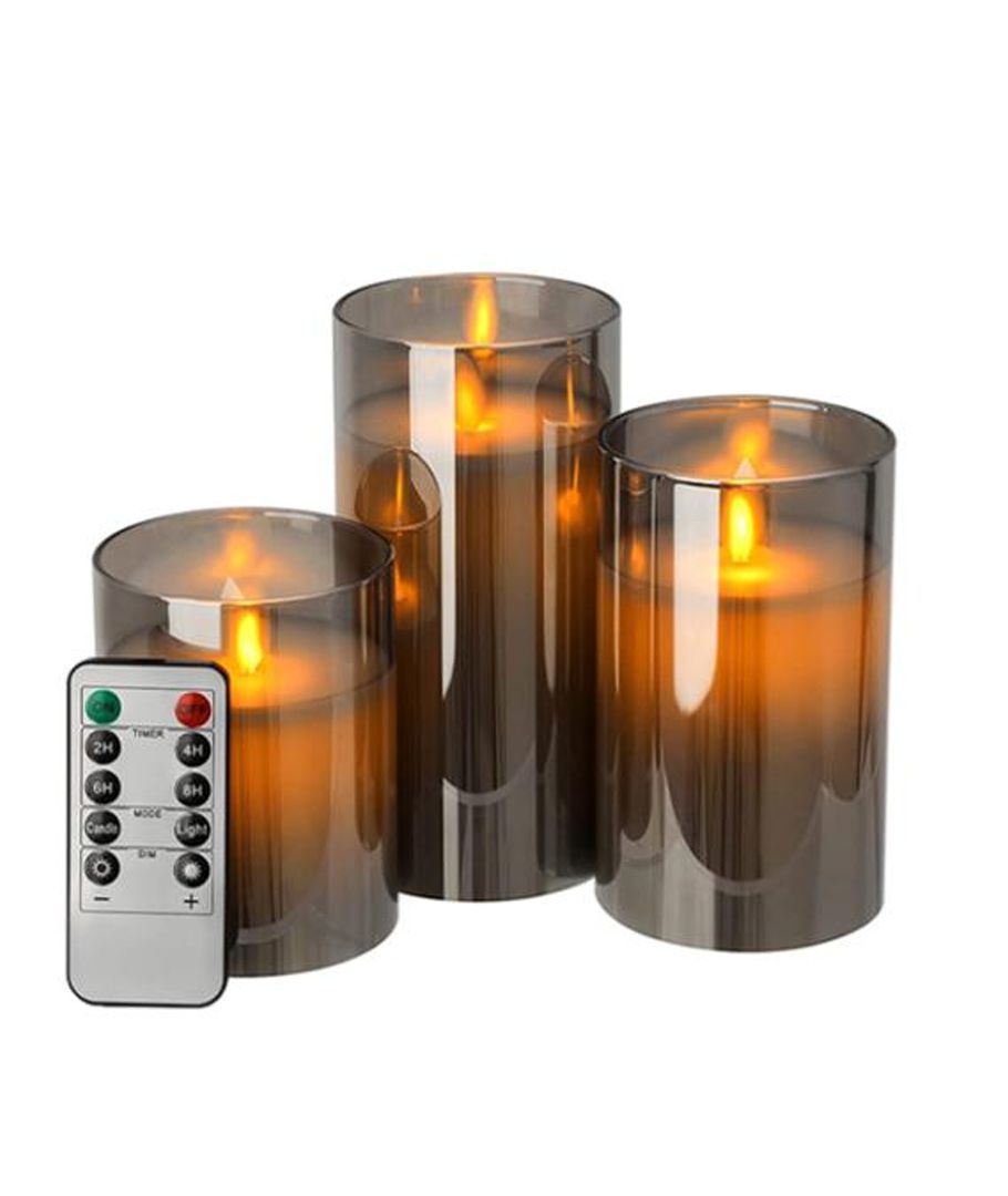 Upplev mysigheten och den eleganta atmosfären med vårt LED Blockljus set i rökfärgat glas, som kombinerar äkta stearin med en realistisk flameffekt. Perfekt för att skapa en varm stämning i hemmet.
