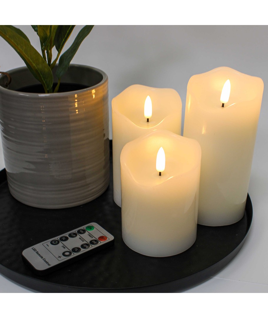 Upplev en magisk atmosfär i ditt hem med vårt LED Blockljus set, som kombinerar skönheten av äkta stearin med modern teknik för att skapa en naturtrogen lågeffekt.