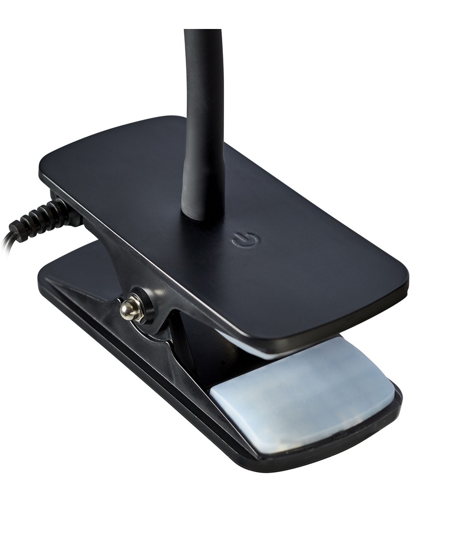 Elegant, vinklingsbar bordslampa från Nielsen Light, med flexibelt stativ och klämma så att den kan fästas på sidan av skrivbordet.