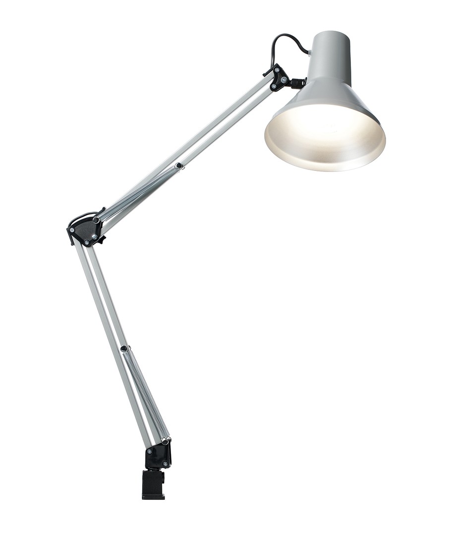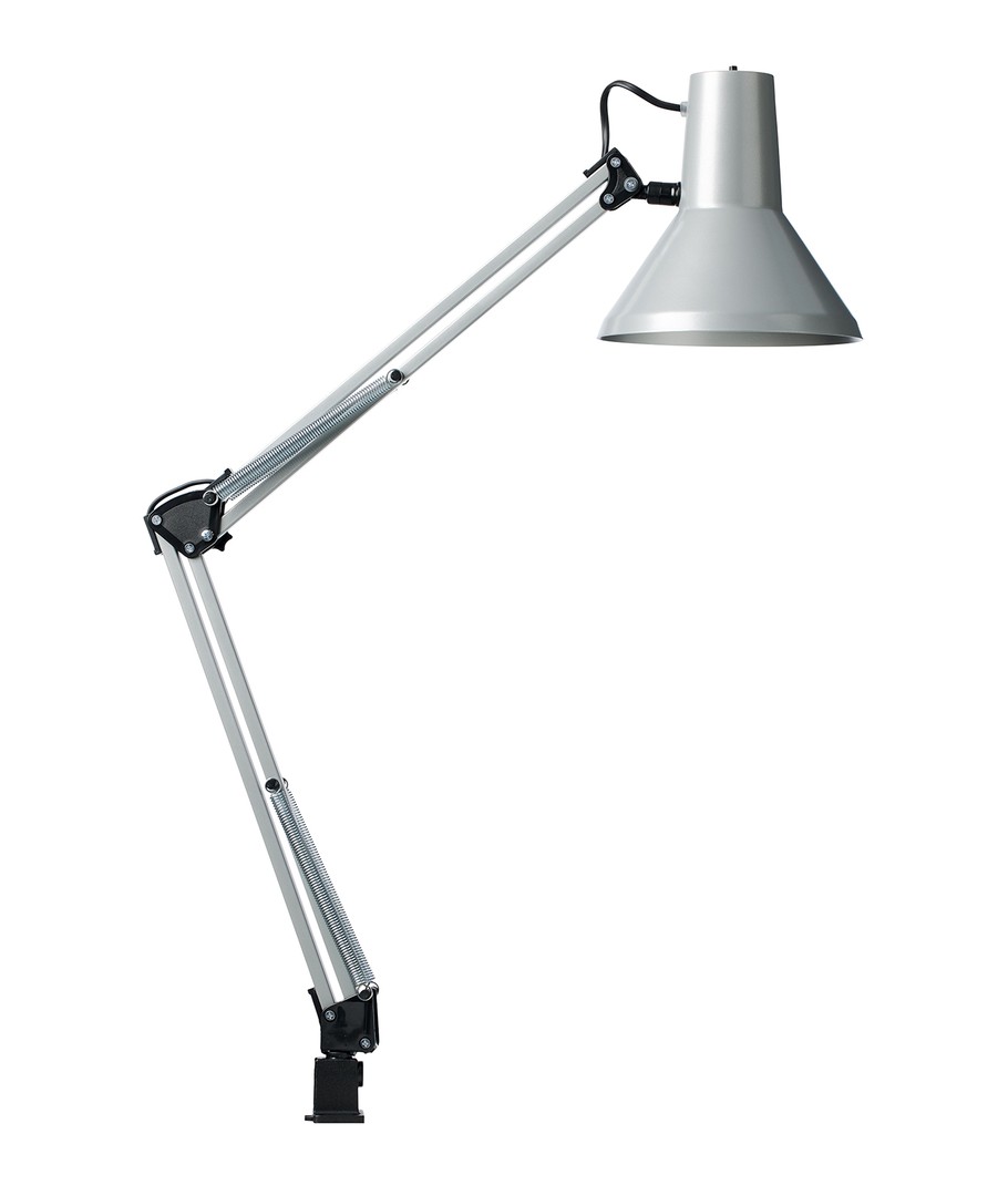 Jensen arkitektlampa i Silver från Nielsen Light är den ursprungliga, klassiska arkitektlampan med 4 kraftiga fjädrar och huvud i ett stycke metall. Lampan levereras inklusive bordsklämma och väggfäste, så den är enkel att montera på skrivbordet eller på en vägg.