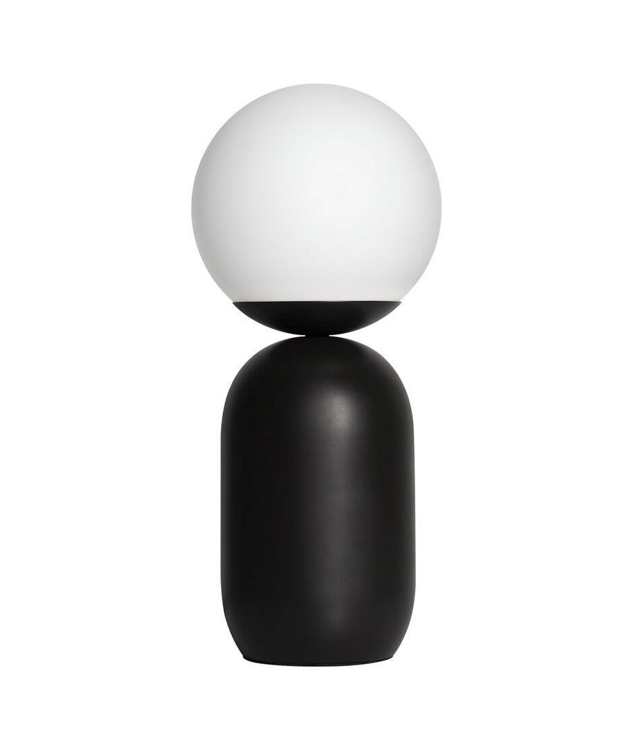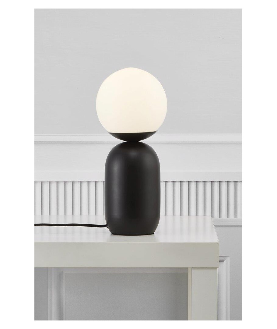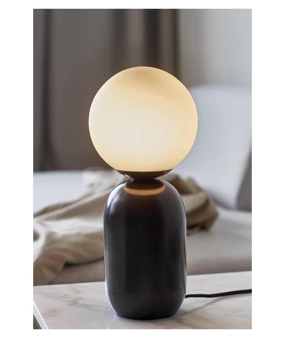 De välformade linjerna resulterar i en vacker bordslampa som speglar en elegant design. Samtidigt står den maskulina foten i matt grå metall i snygg kontrast till den fina kupolformade glasskärmen, som bidrar till visuell volym och ett mjukt ljus.