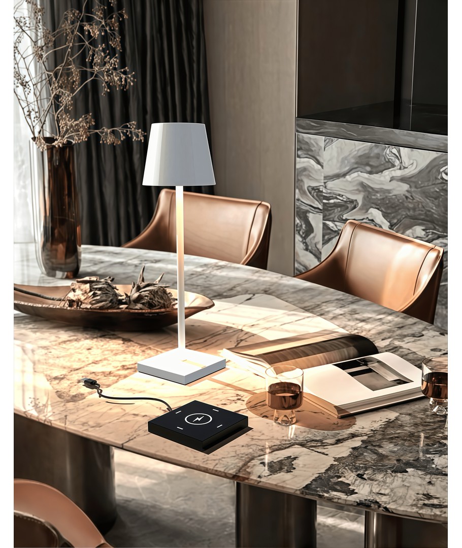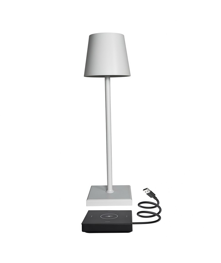 Denna mångsidiga LED bordslampa erbjuder inte bara stilfull belysning utan även praktisk funktionalitet med inbyggd trådlös laddning. Designad för både inomhus och utomhusbruk, detta eleganta ljus har en robust IP54-klassning som gör det lämpligt för fuktiga och våta miljöer.