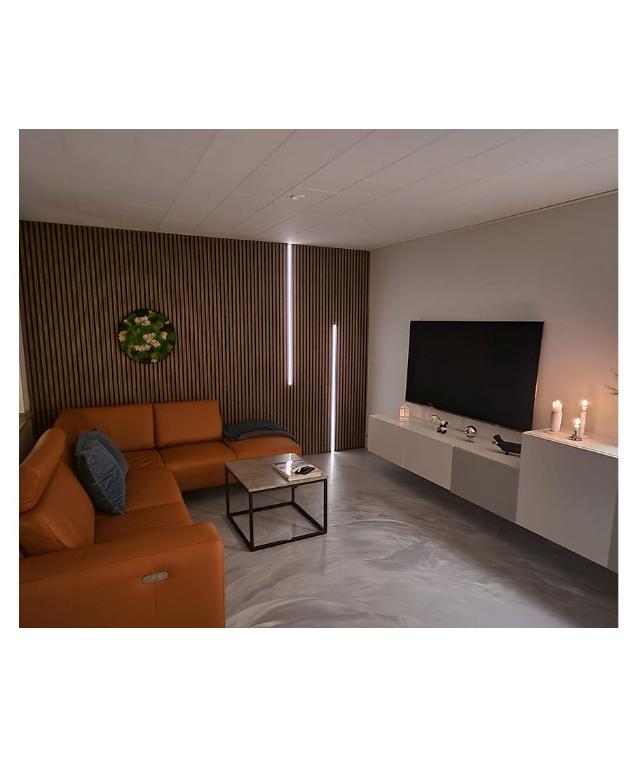 Få ut det mesta av dina akustikpaneler med denna CCT-profiluppsättning. Denna lösning kombinerar en svart aluminiumprofil med en CCT COB LED-list, som ger elegant och diskret belysning utan synliga dioder. Perfekt för att skapa ett vackert och estetiskt ljus mellan lamellerna i dina akustikpaneler.