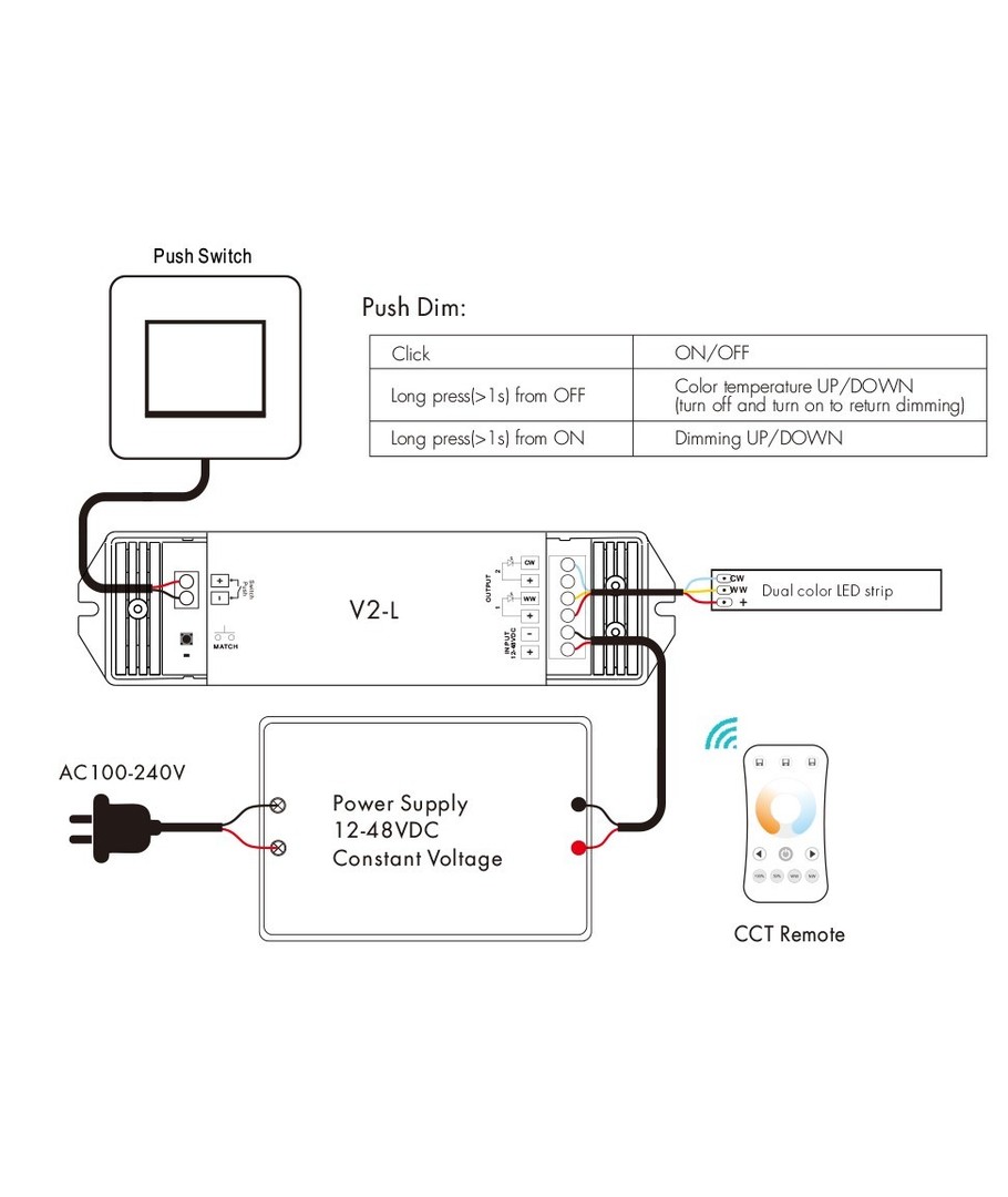Styr 12V, 24V, 230V och dimning, CCT, RGB - allt med samma fjärrkontroll.