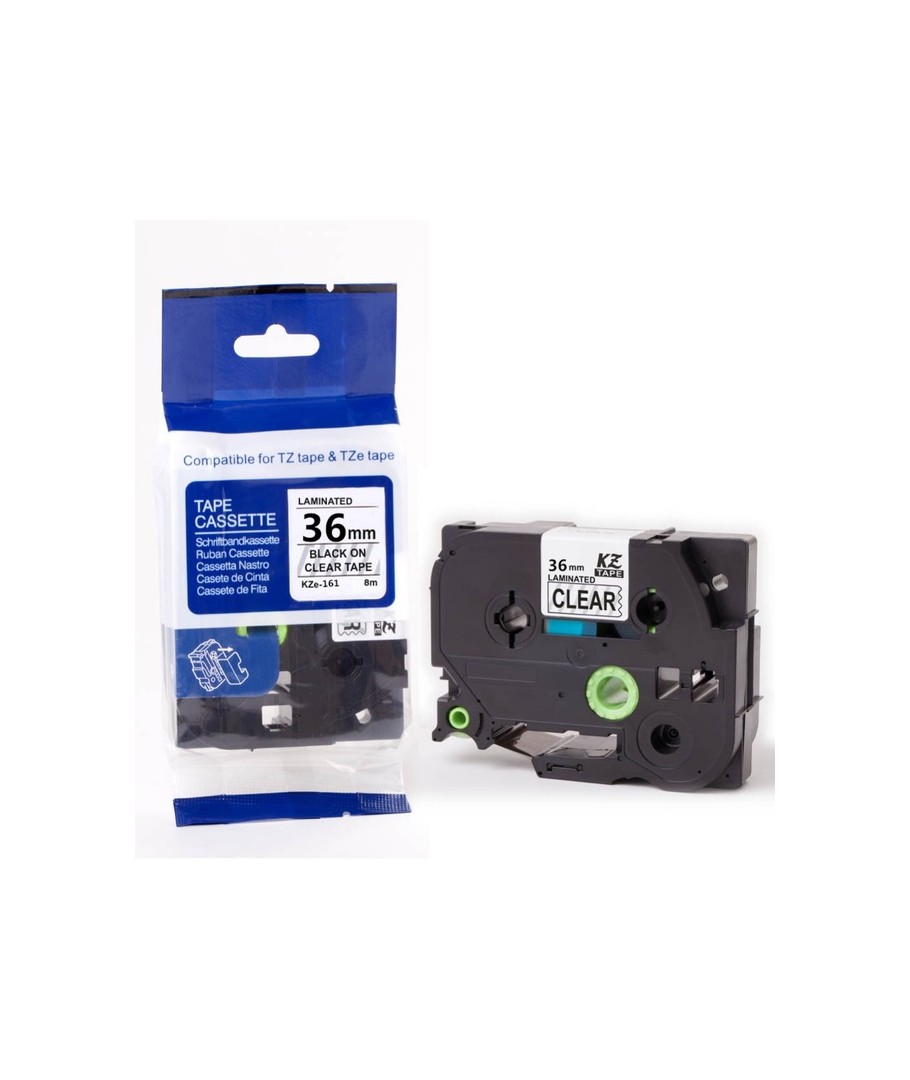 36mm x 8m Svart text på klar tape