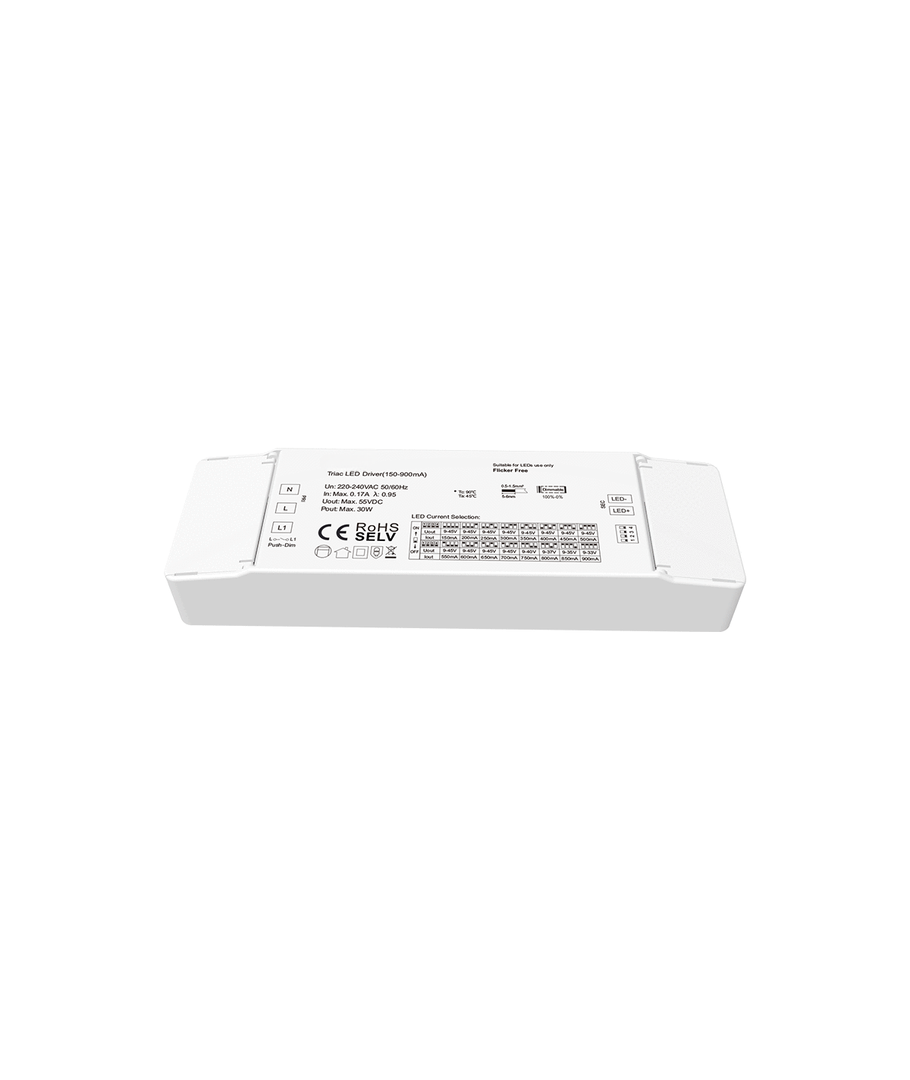 9-45V, Triac + Push dim, flimmerfri