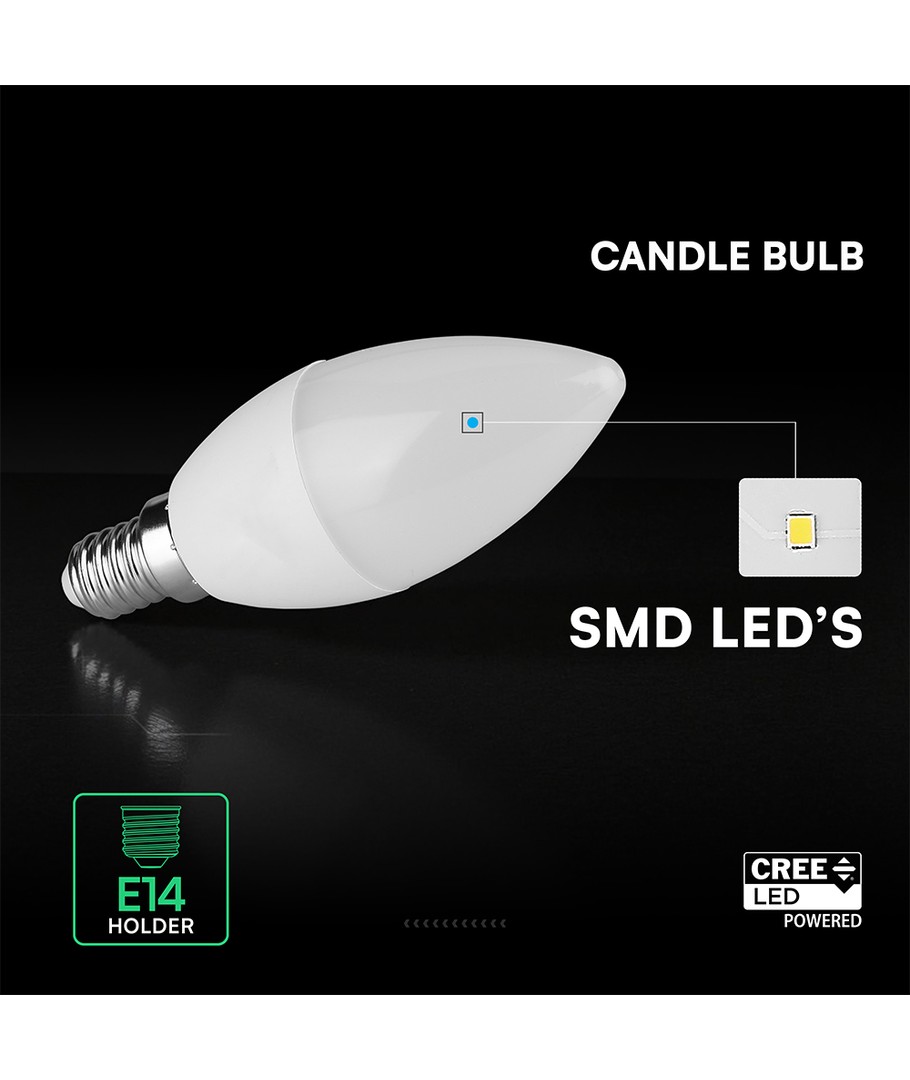 Upplev en energieffektiv och hållbar lösning för din belysning med vår E14 6,5W LED kronljuslampa, som är utrustad med ett Cree LED Chip och kommer med en imponerande 6 års garanti.