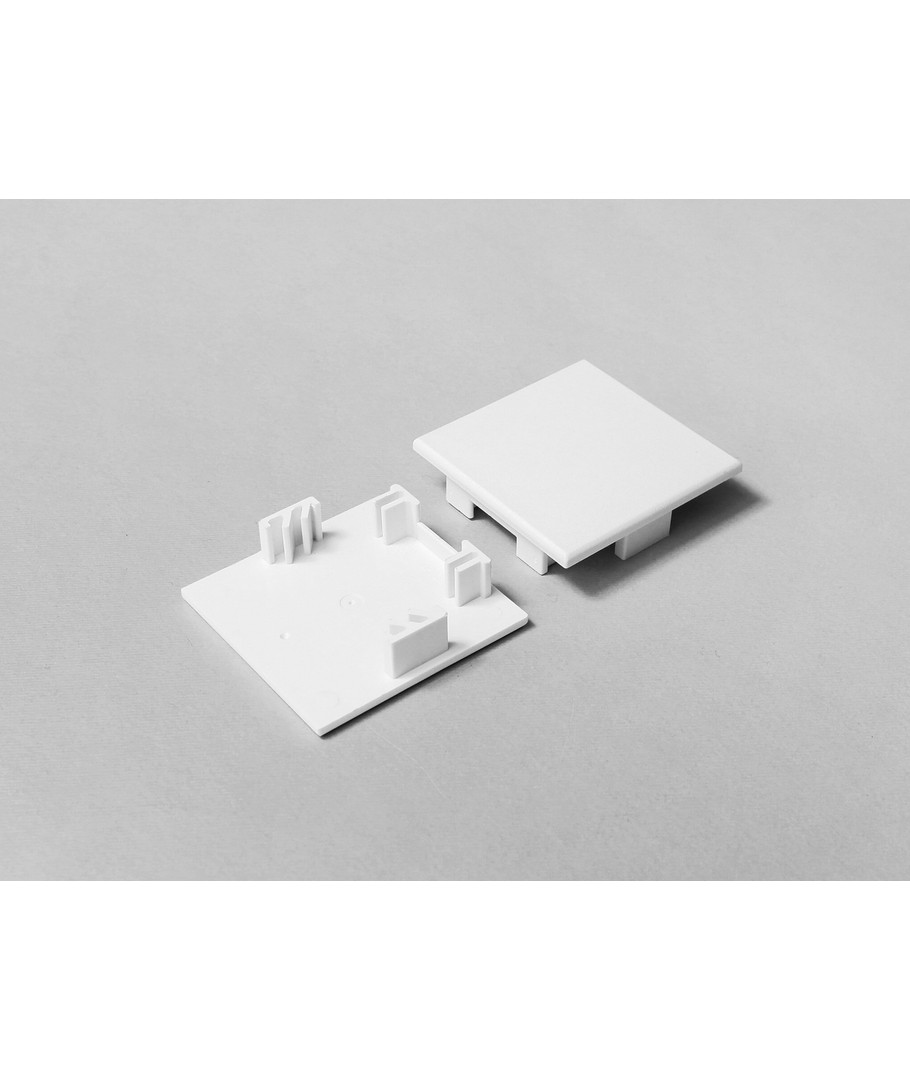 Ändstycke PHIL53 i vit färg, designad för att avsluta aluminiumprofiler snyggt och säkert.