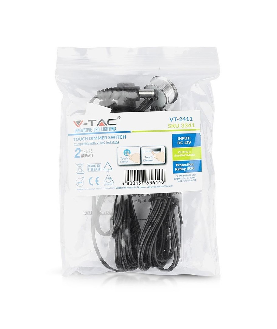 V-Tac LED touch-dimmer och avbrytare - Svart, 12V (60W), 1,5 meter, DC-kontakt v-tac Expandera