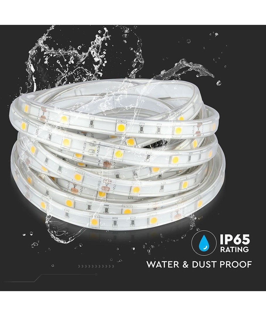 Med IP65-klassning är denna LED-strip designad för att tåla vattenstänk och regn, vilket gör den lämplig för utomhusinstallationer.
