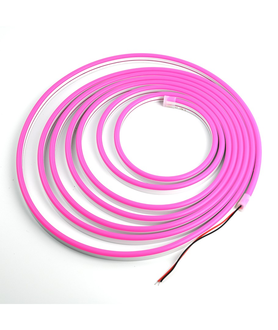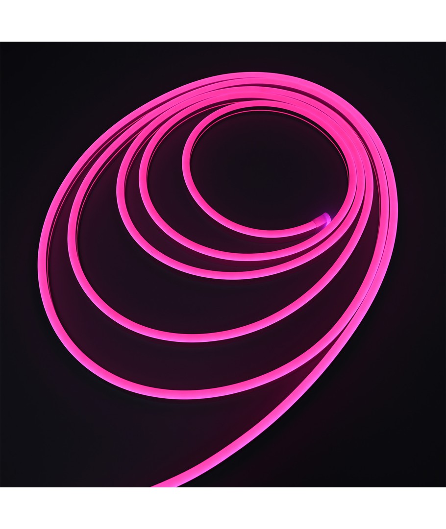 Denna flexibla Rosa Neon Flex LED Strip är idealisk för att ge ett iögonfallande och stilrent utseende till dina inomhus- eller utomhusprojekt. Med en effekt på 8W per meter, erbjuder denna LED-remsa ett kraftfullt ljus samtidigt som den är energieffektiv.