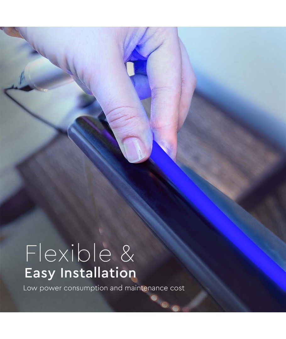 Denna COB LED-remsa ger ett jämnt och oavbrutet ljus utan synliga mellanrum, tack vare de 320 LED:erna per meter. LED-remsan ger ett vackert blått ljus, som är idealiskt för både dekorativ och praktisk belysning.