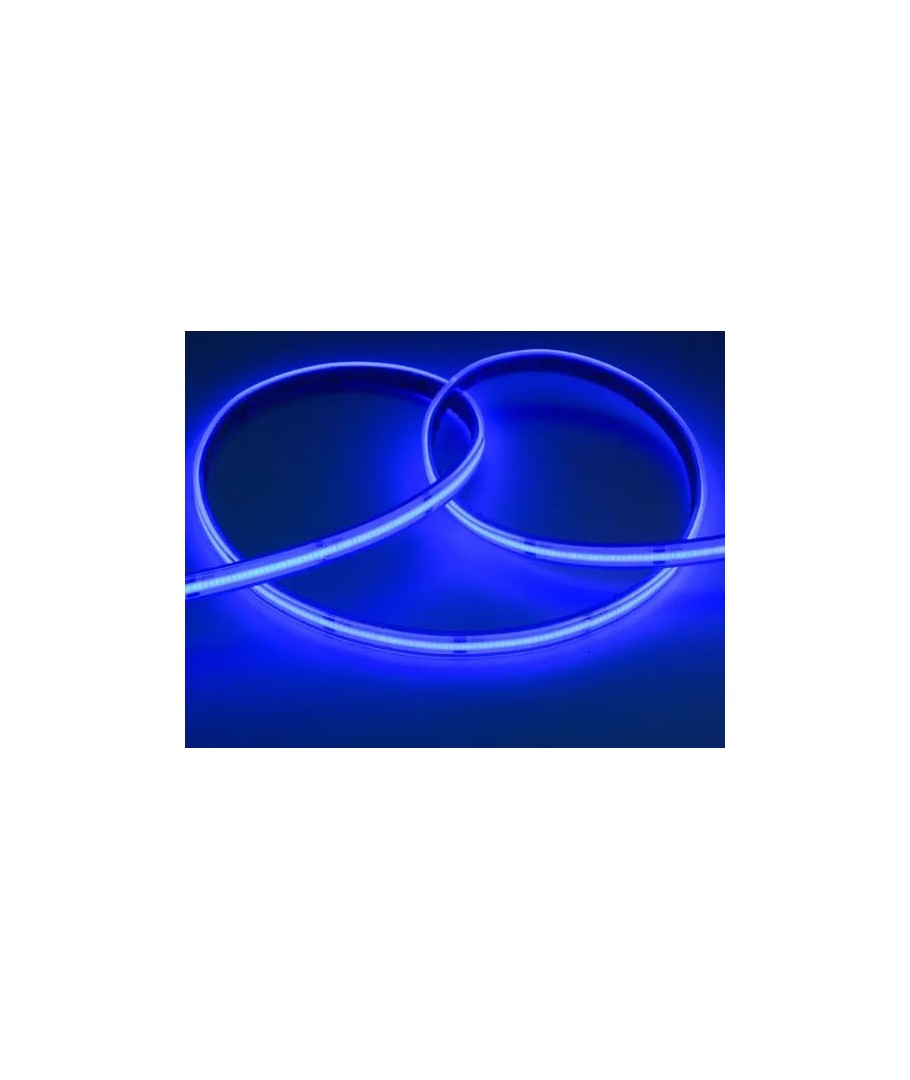 Upptäck vår blå COB-LED strip som ger 10W per meter och fungerar utmärkt för både dekorativa och funktionella ljussättningar. Med sina imponerande 320 LED per meter säkerställs en intensiv ljusstyrka som skapar en förtrollande atmosfär.