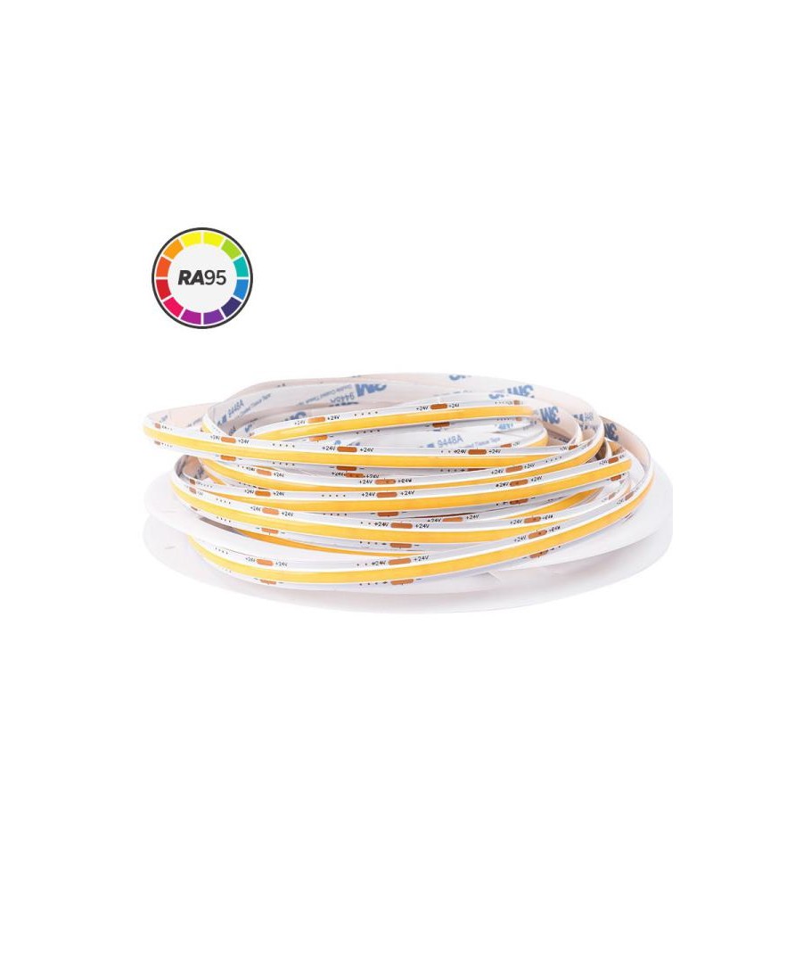 Utan spänningsfall, 10,5W/m, IP20, 312 LED per meter, 24V, COB LED, RA95