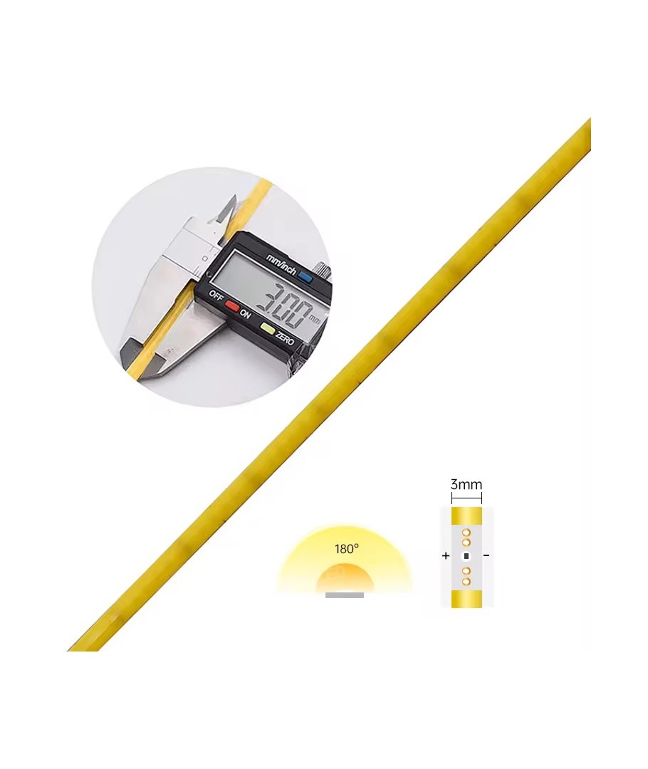 Extra tunn COB-remsa på endast 3 mm bredd som kombinerar hög prestanda med en kompakt bredd, perfekt för kreativa och diskreta belysningslösningar.