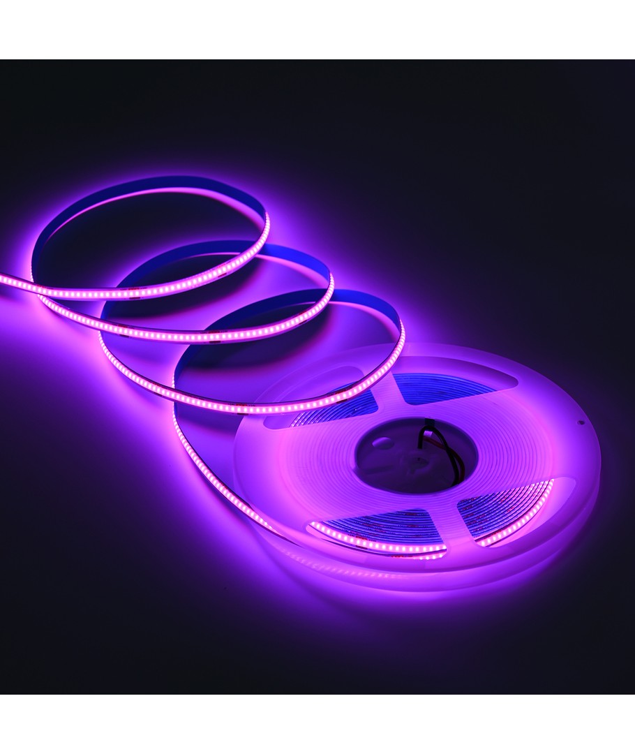 Enfärgad rosa COB LED strip med 320 LED:er per meter.