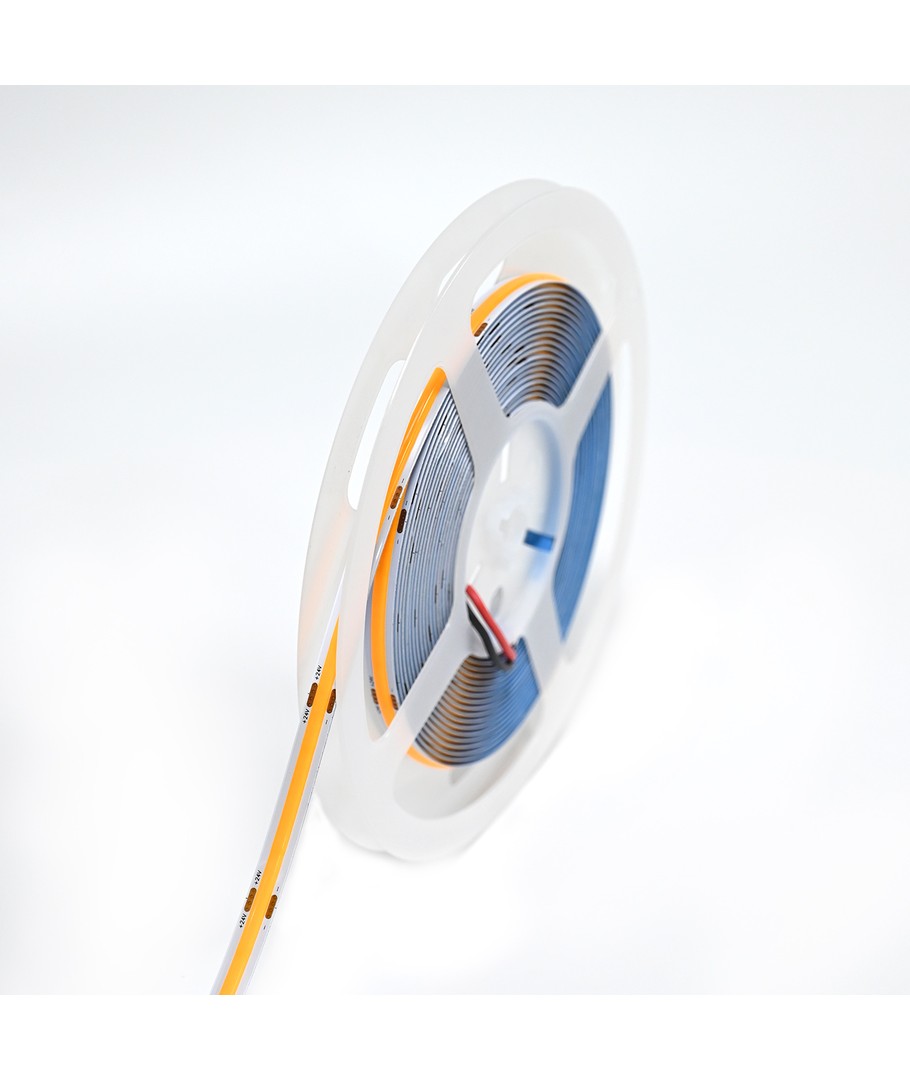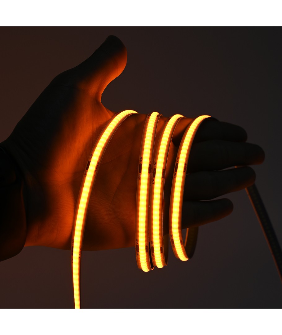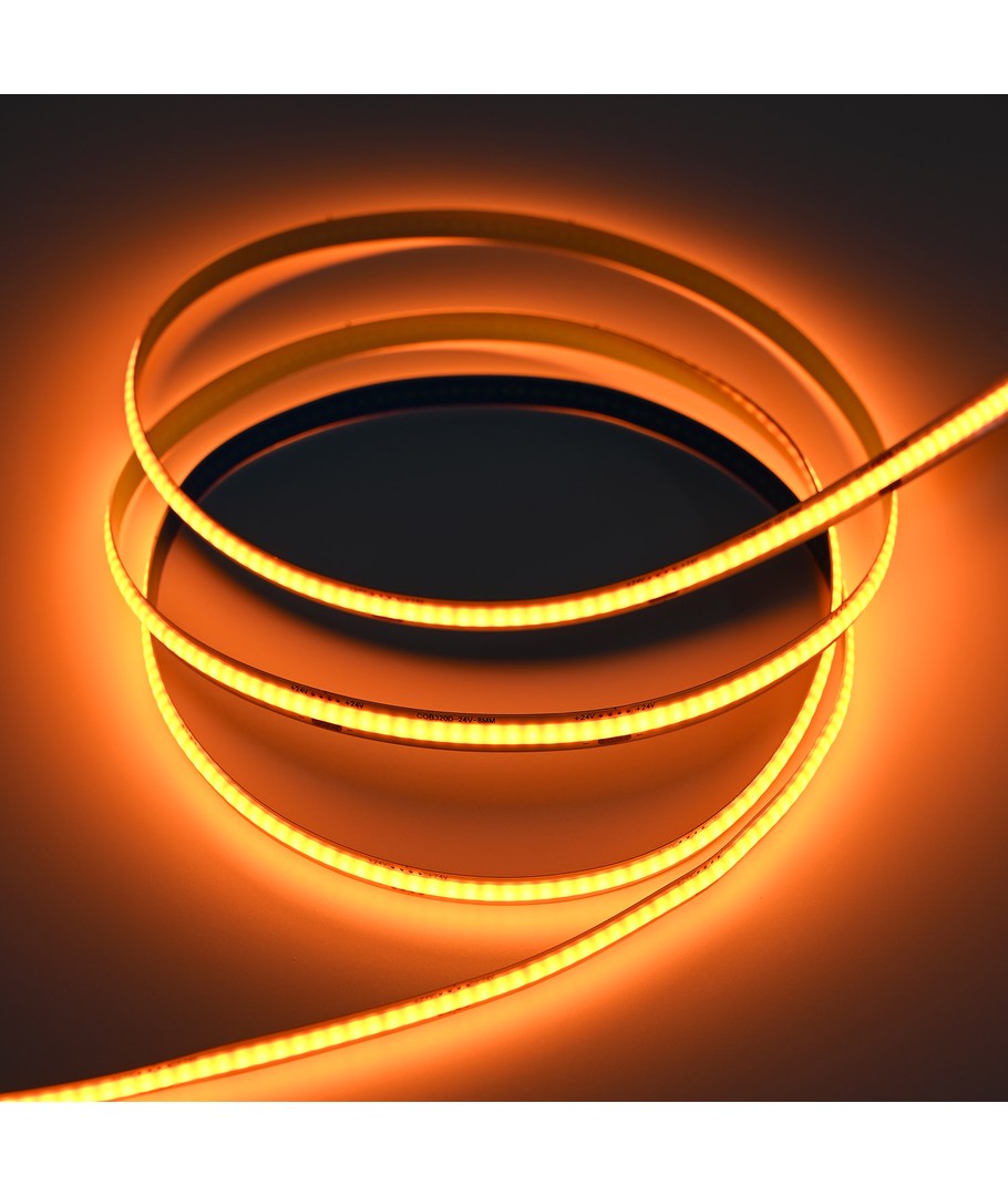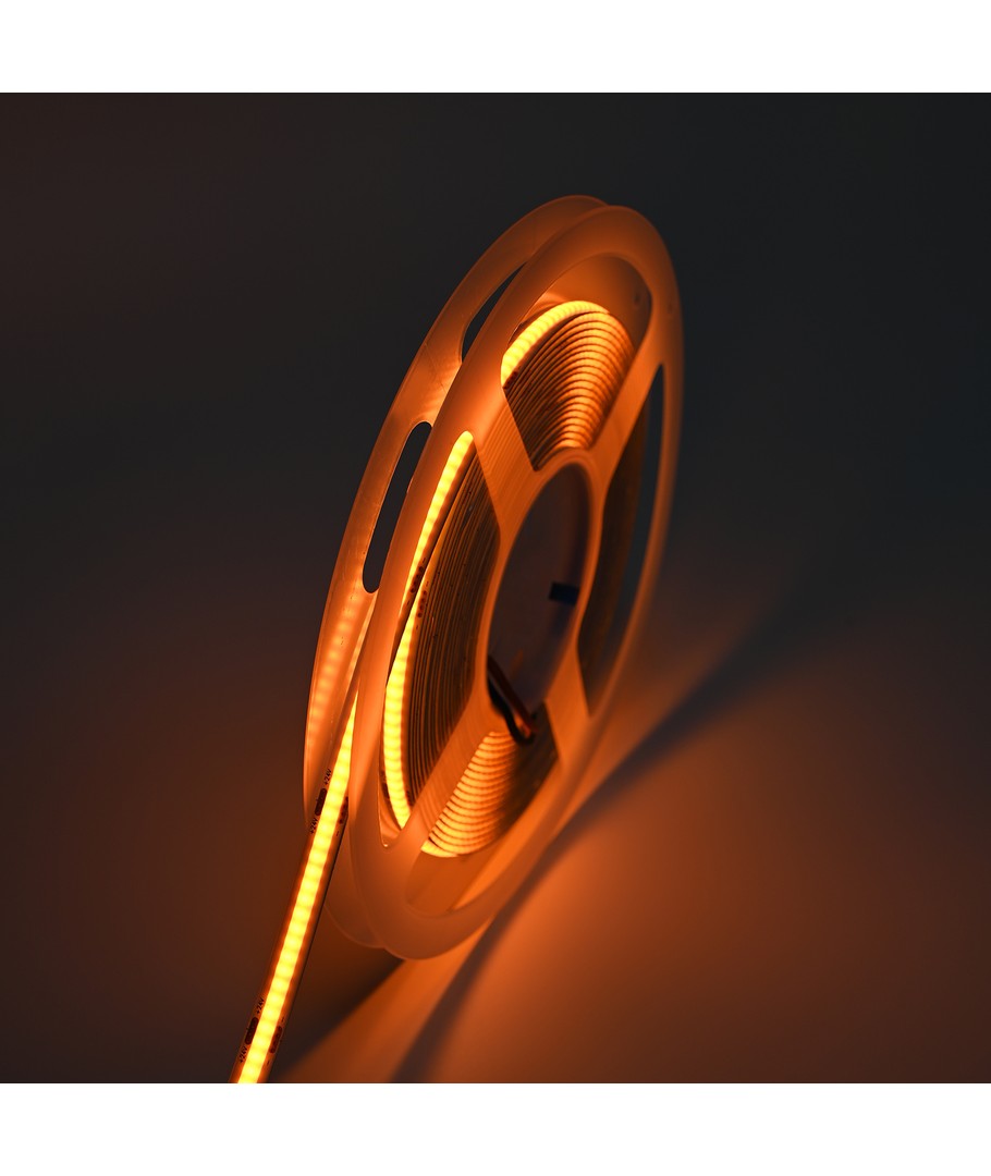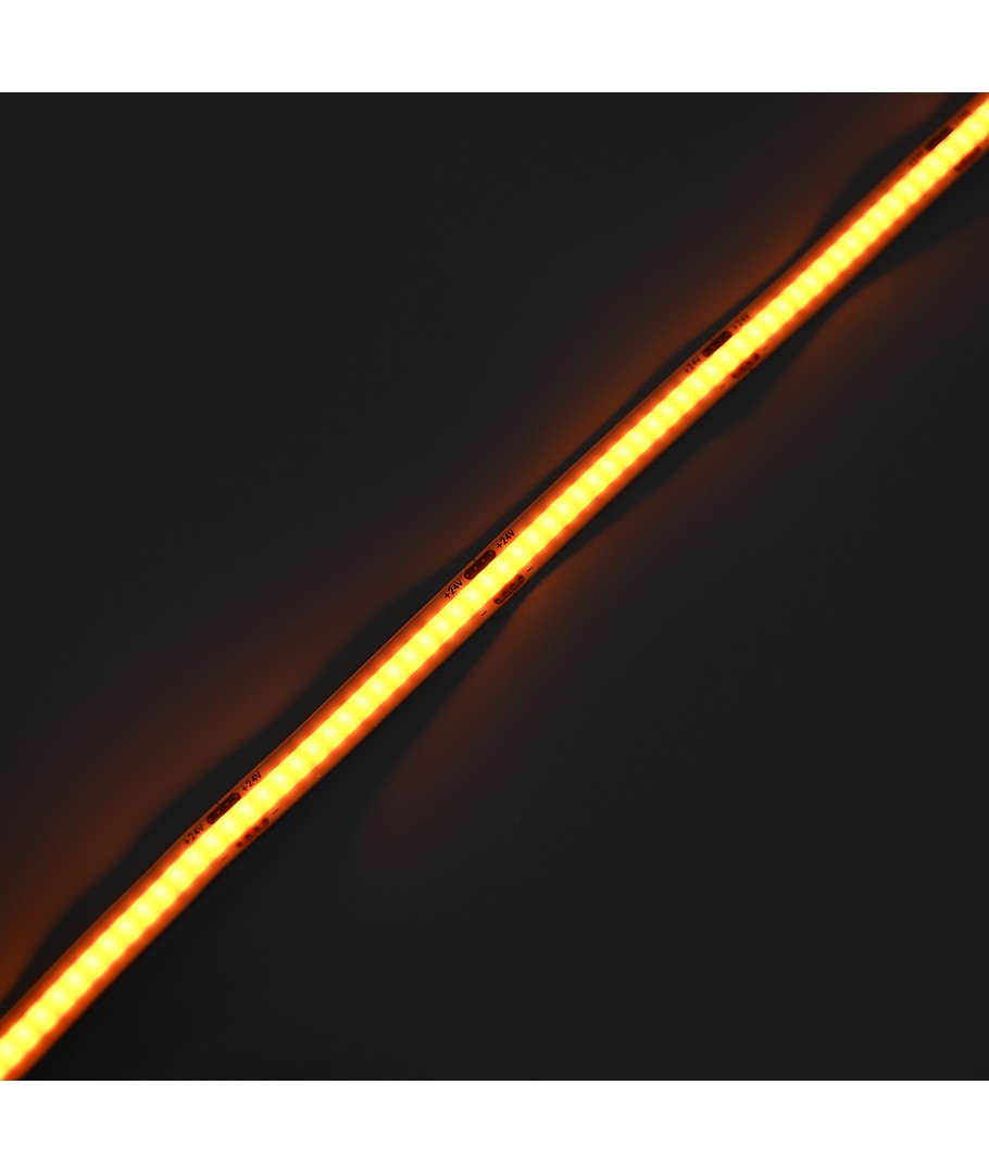 Enfärgad orange COB LED strip med 320 LED-lampor per meter.