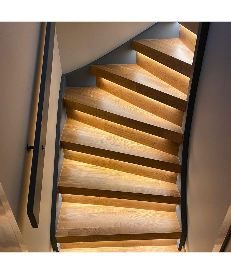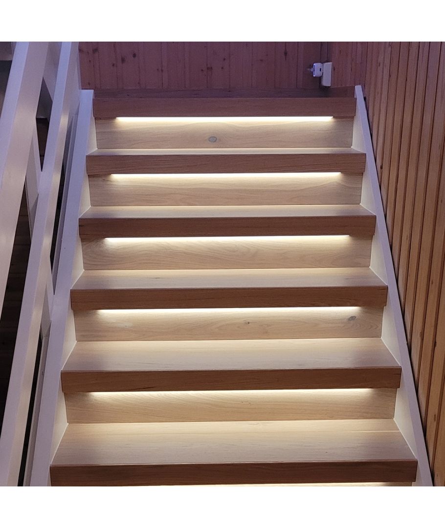 Denna LED-stripset levereras med en sensor för att automatiskt tända ljuset när någon närmar sig trappan. Detta ger inte bara en bekväm och praktisk belysning, utan också extra säkerhet, särskilt under natten.