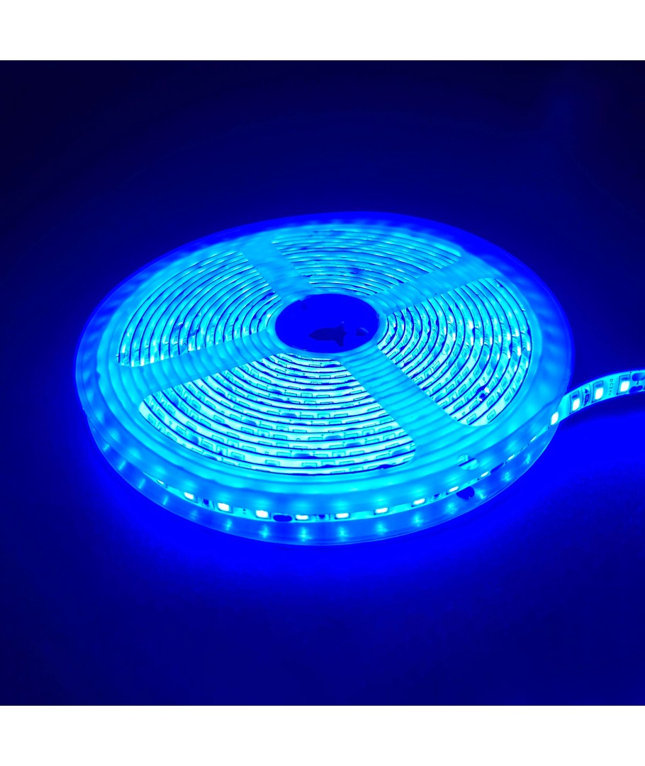 Skapa en stämningsfull belysning med denna Blå 10W/m LED-strip på 5 meter, som har en klarare färg än RGB.