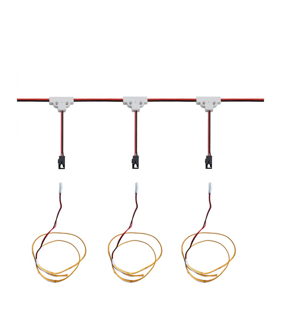 Enkel montering där en "master" ledning dras på ena sidan av trappan, där ljuset till varje steg enkelt ansluts.