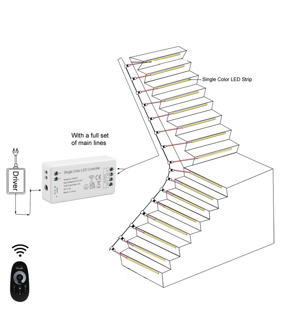 1 x ControllerGe dina trappor ett modernt och stämningsfullt utseende med vår högkvalitativa LED COB stripset, speciellt designad för att belysa upp till 16 steg. Denna belysningslösning är både praktisk och estetiskt tilltalande, tack vare sin integrerade ljuskälla och eleganta design.