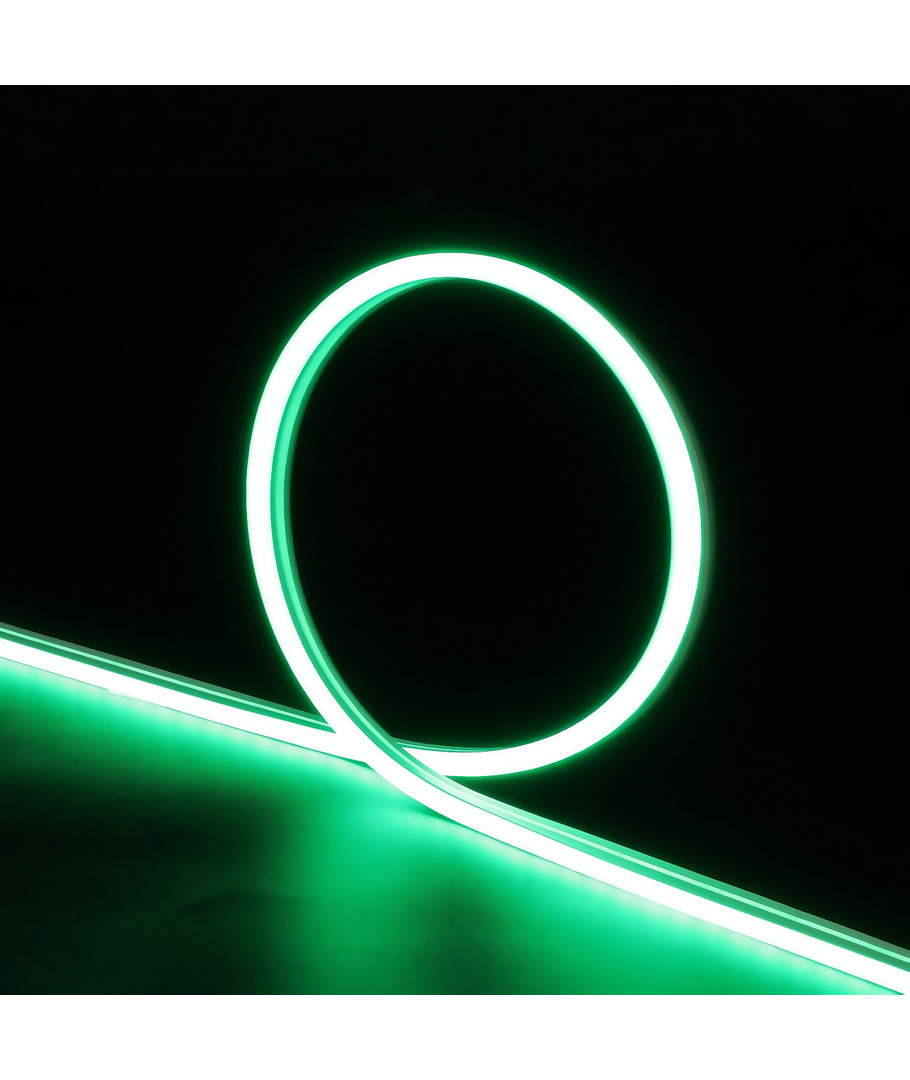 Denna 8W per meter Grön Neon Flex LED är en utmärkt lösning för både inomhus- och utomhusbruk där du behöver ett jämnt och konstant ljus. Med sin kompakta design, 8 x 16 mm, passar den lätt in i olika miljöer för att komplettera din belysningslayout.