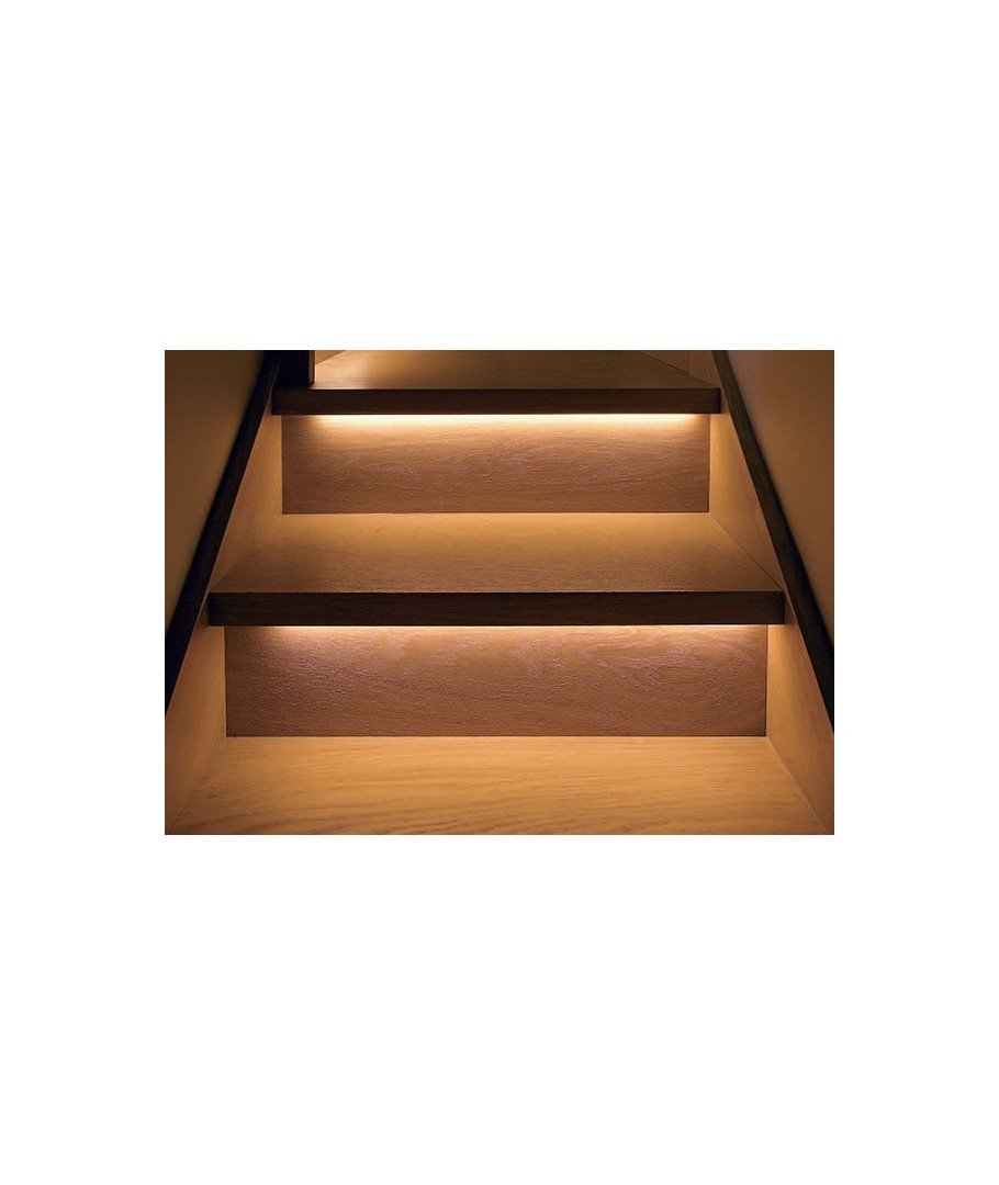 LED strippen er stöpt i silikon och är en superenkel lösning till både inomhus och utomhus trappbelysning.