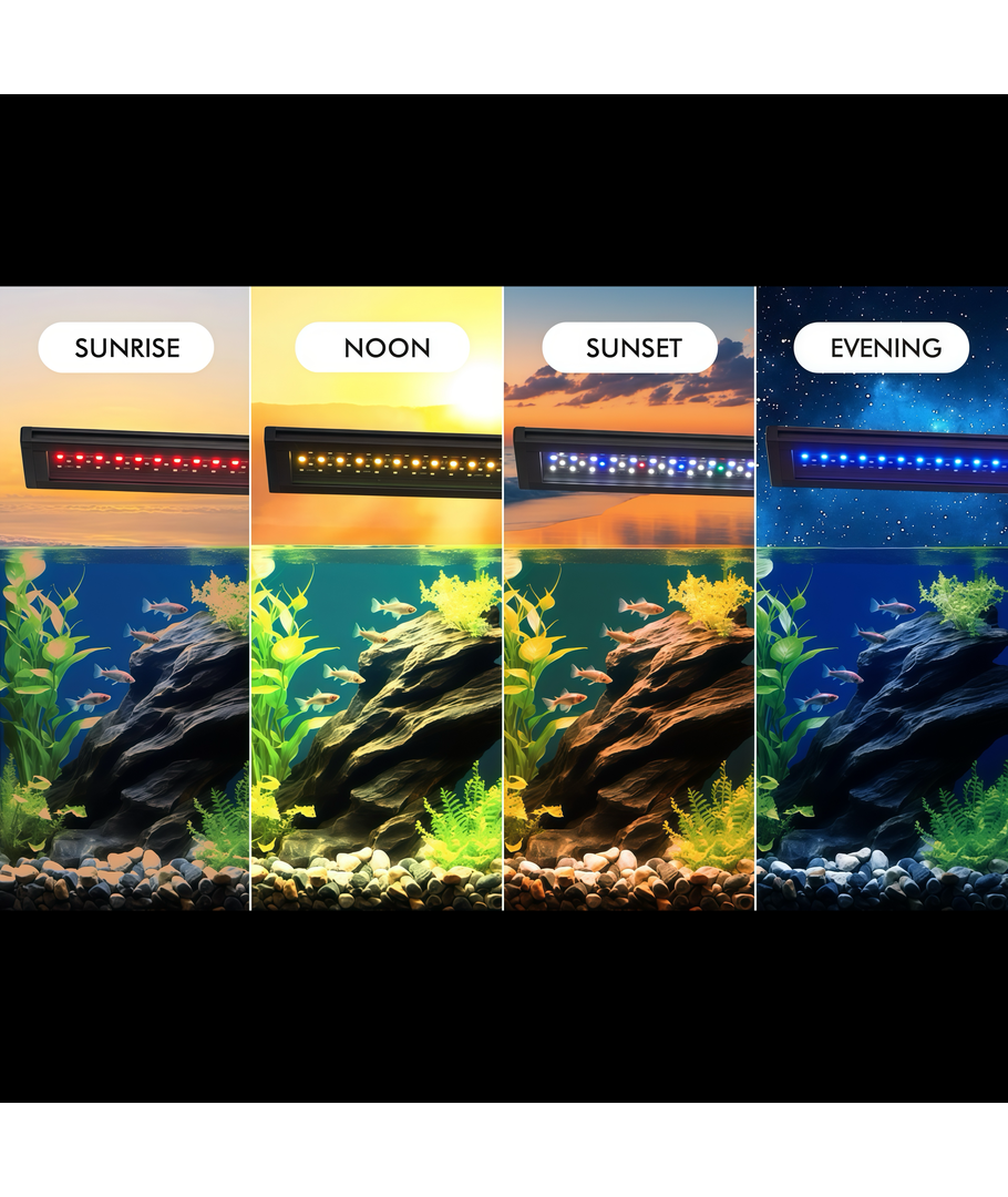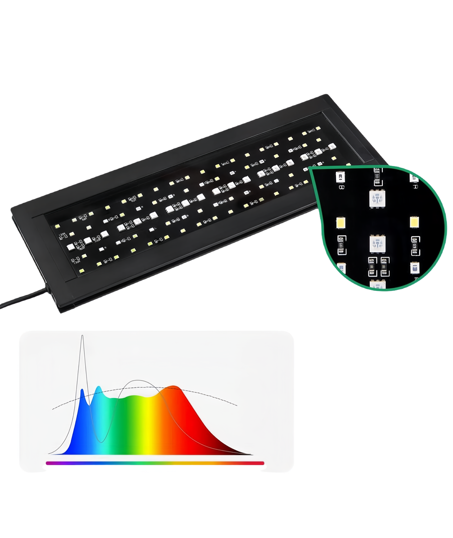 Belysningen erbjuder en bred spridning på 120 grader, vilket garanterar en jämn och effektiv ljusfördelning över hela akvariet. Detta är perfekt för att säkerställa att alla delar av ditt vattenlandskap blir belysta och skapar en naturlig upplevelse för både växter och fiskar.