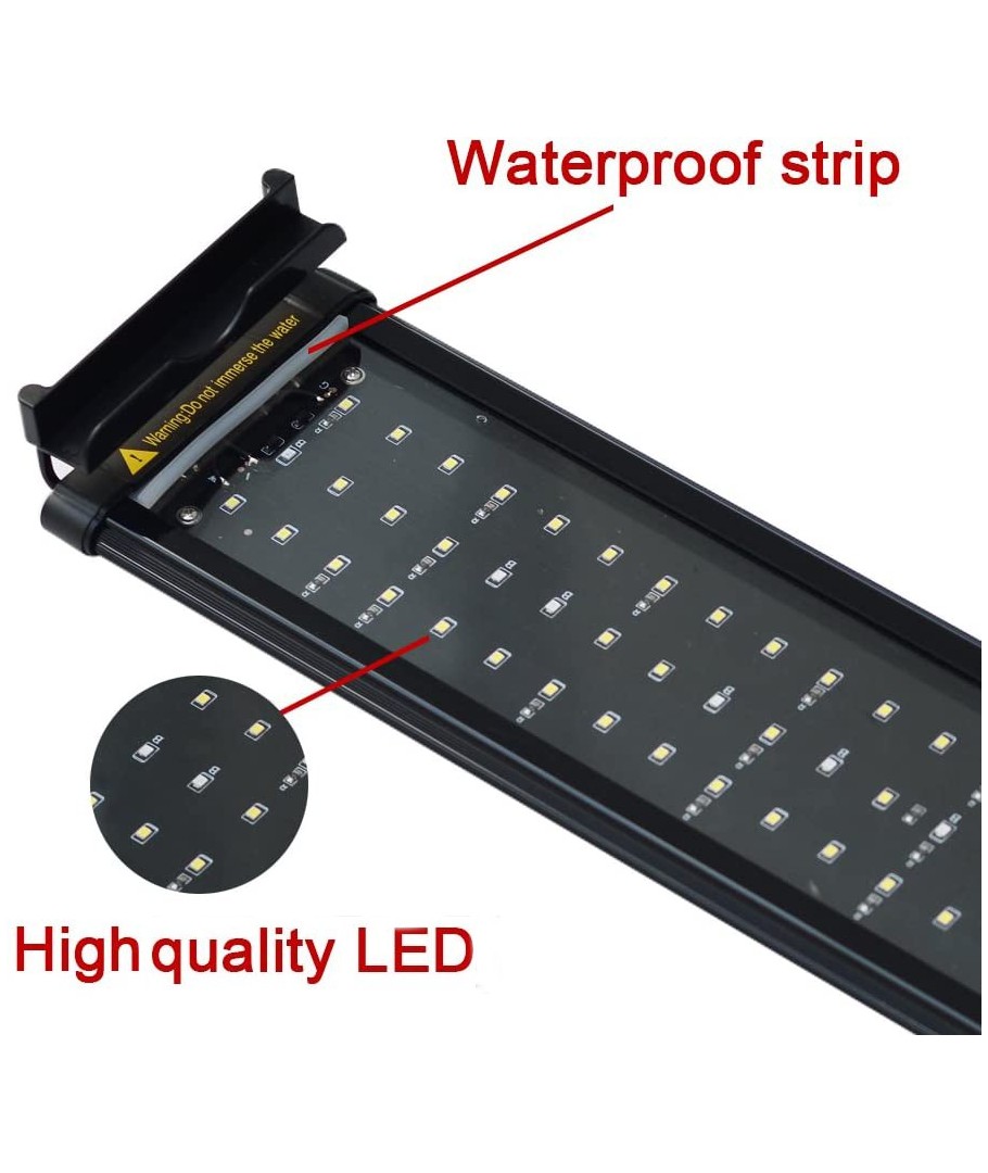 Dra nytta av den avancerade teknologin som denna LED-akvariearmatur erbjuder och skapa ett ljusspel som ger liv åt din vattenvärld, samtidigt som du sparar energi och minimerar underhåll. Den strömsnåla 11W effekten säkerställer att du har kontroll över dina energikostnader utan att kompromissa på prestanda.
