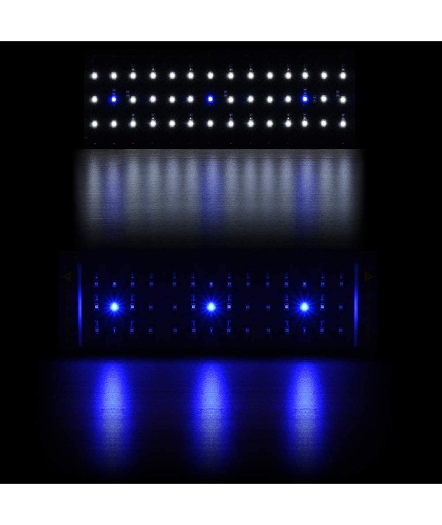 Kombinationen av vitt och blått ljus ger en naturlig och estetiskt tilltalande atmosfär i ditt akvarium, vilket stimulerar både fiskar och växter på ett positivt sätt.