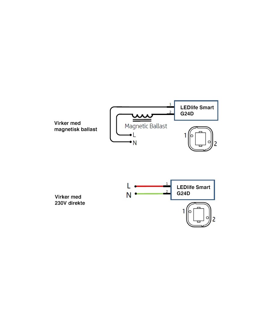 Den har en G24 sockel och ansluts till 230V / Ballast.