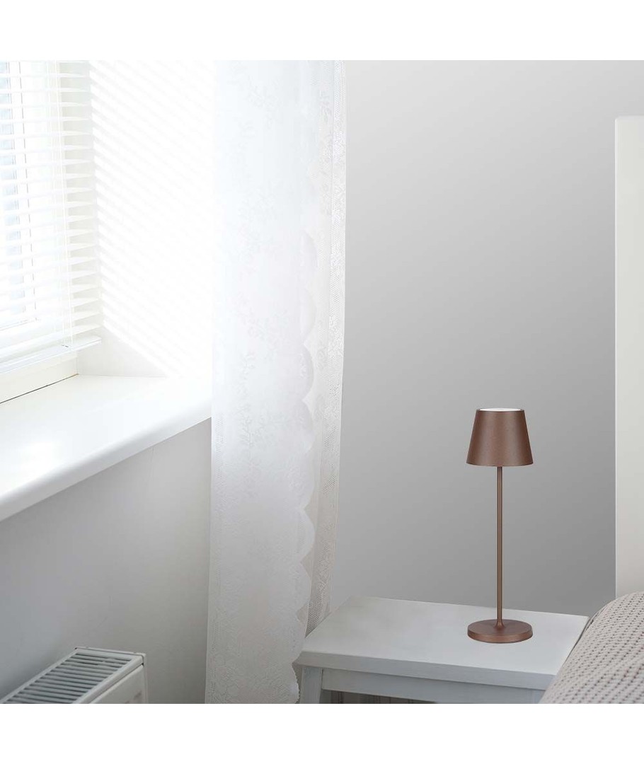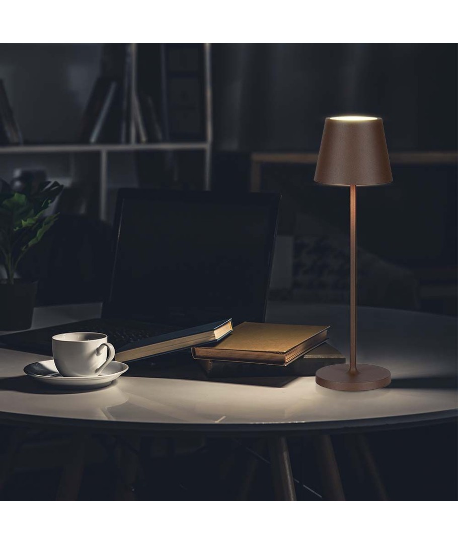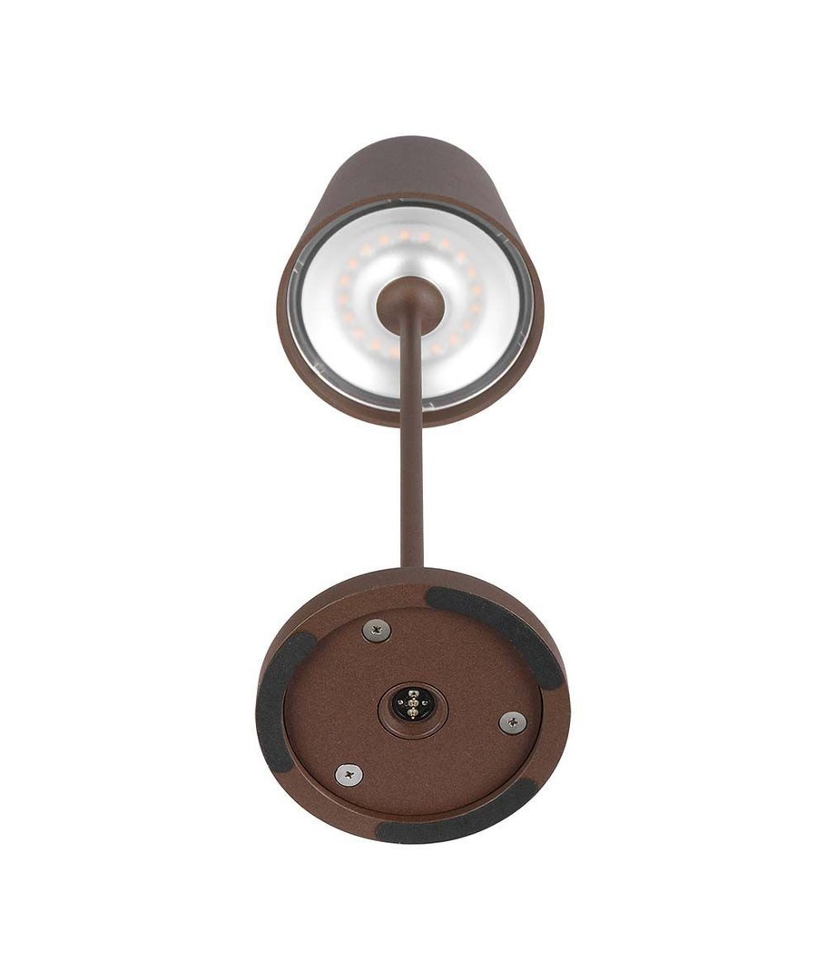Med en Corten-finish erbjuder denna bordslampa både elegans och hållbarhet. Den stilrena designen gör den till ett perfekt tillskott på terrassen, balkongen eller trädgården.