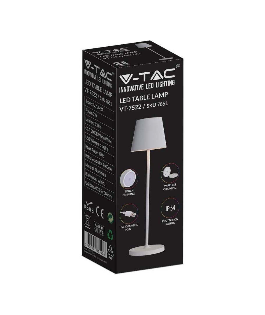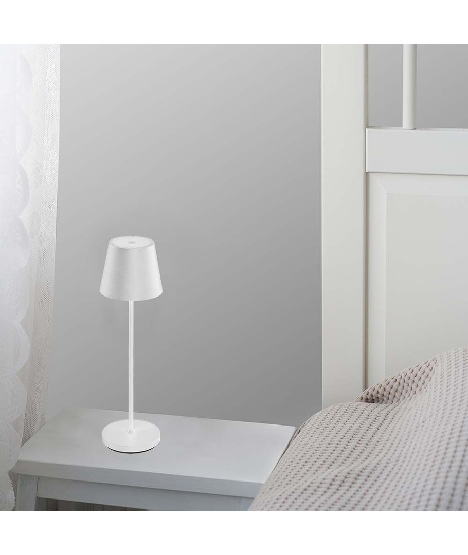 Denna uppladdningsbara bordslampa erbjuder enkel stil och imponerande funktionalitet med en trådlös design som gör den lätt att placera var som helst i hemmet eller utomhus. Den moderna vita finishen ger ett stilrent utseende som smälter in i alla miljöer.