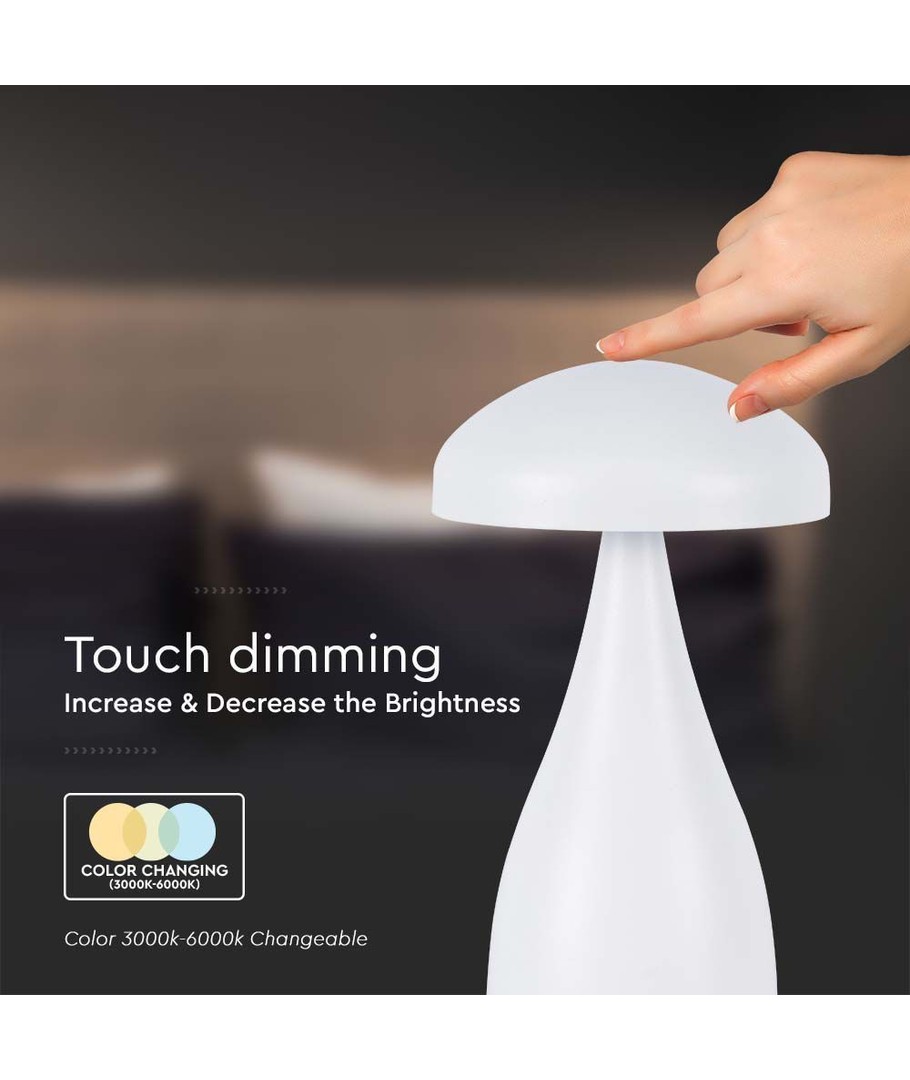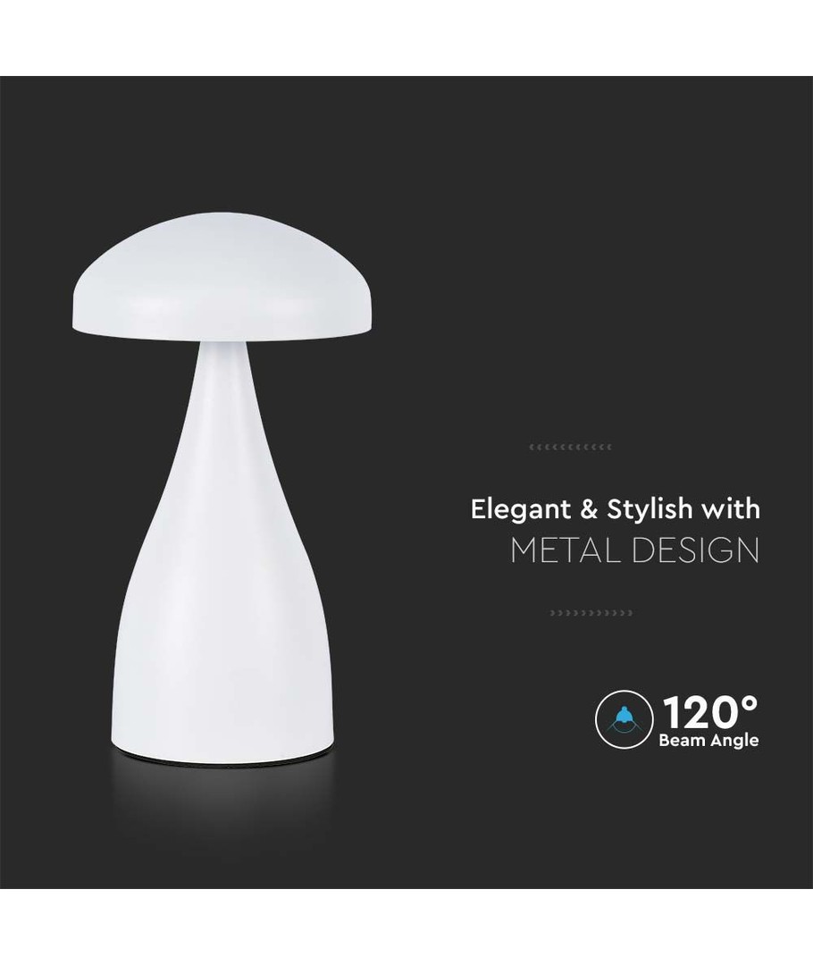 Vit uppladdningsbar LED-bordslampa för inomhusbruk från V-Tac.