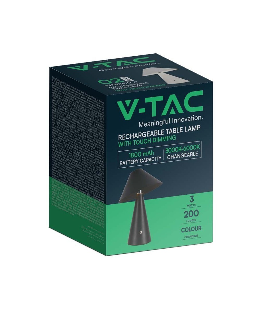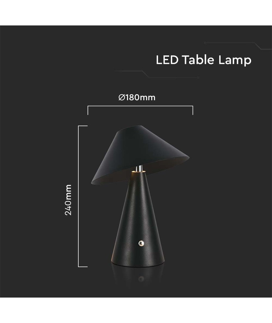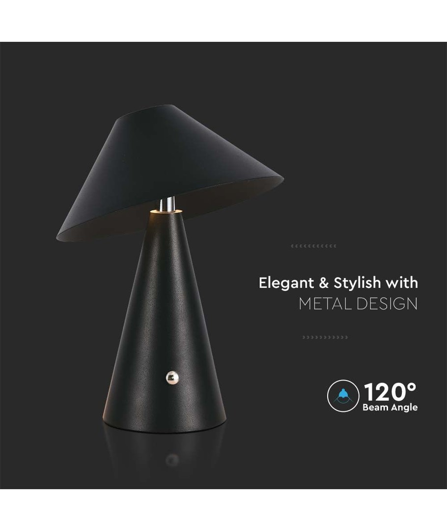 Svart uppladdningsbar LED-bordslampa för inomhusbruk från V-Tac.