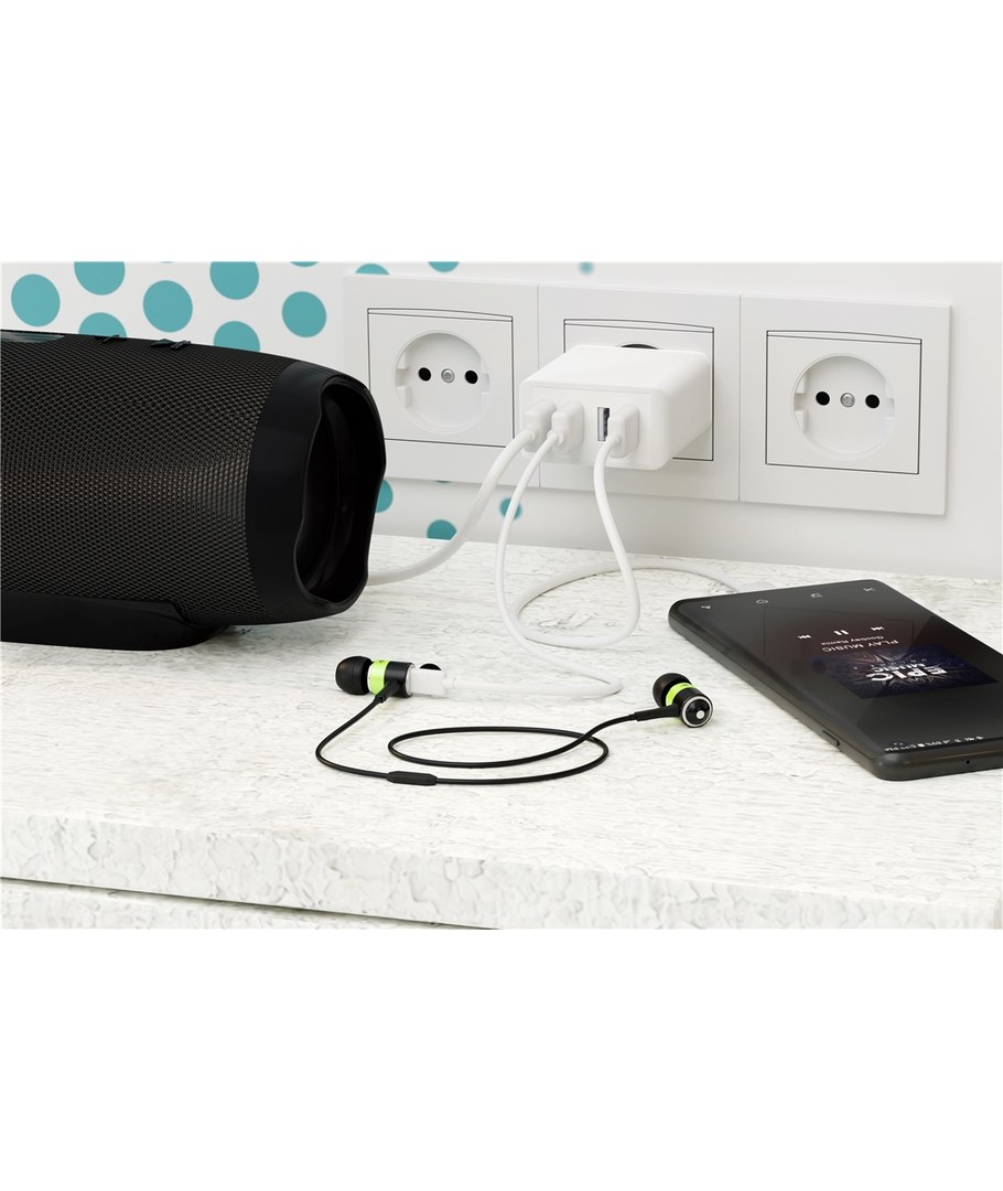 Med inte mindre än 4 kraftfulla USB-A-portar ger denna laddare dig möjlighet att ladda upp till 4 enheter samtidigt. Sluta krångla med att välja mellan dina prylar - nu kan du ladda dem alla samtidigt!