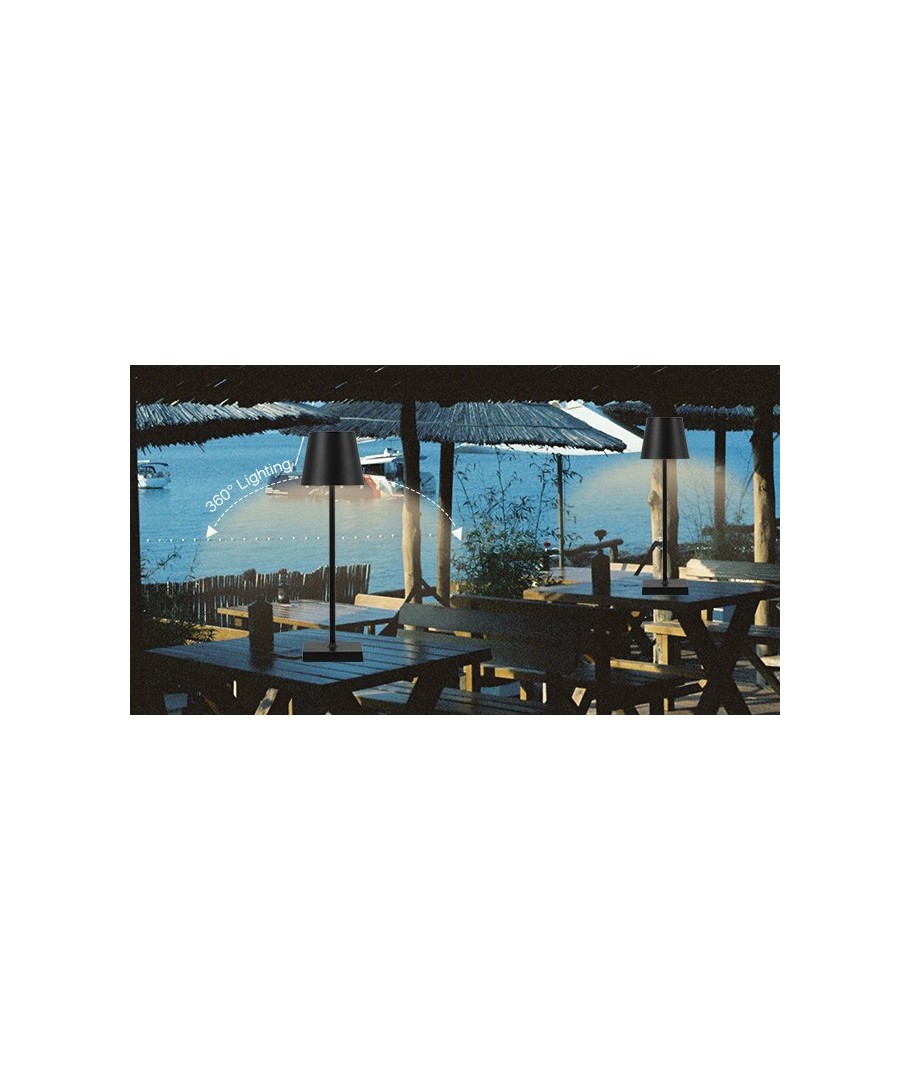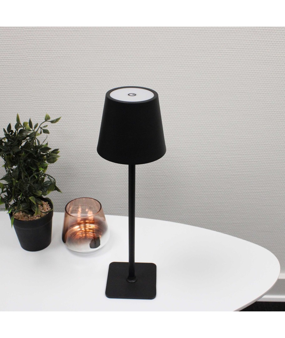 Utforska den perfekta kombinationen av stil och funktionalitet med denna mångsidiga LED-bordslampa. Den är designad för att kunna användas både inomhus och utomhus. Med en elegant svart finish, passar denna lampa in i alla miljöer, oavsett om det är på vardagsrumsbordet eller ute på altanen.