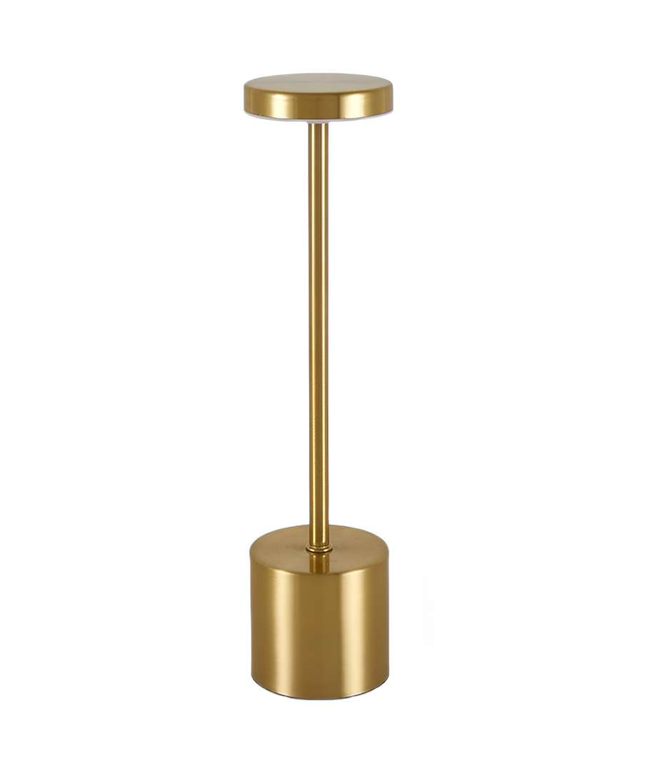 Denna lampas tidlösa guld-finish ger en touch av lyx till vilken miljö som helst, medan den slanka och kompakta designen gör den lätt att placera på olika ytor. Trots sitt eleganta utseende är lampan robust och designad för att vara en långvarig del av ditt hem. Med en integrerad ljuskälla behöver du inte oroa dig för att byta glödlampor, vilket sparar både tid och pengar.