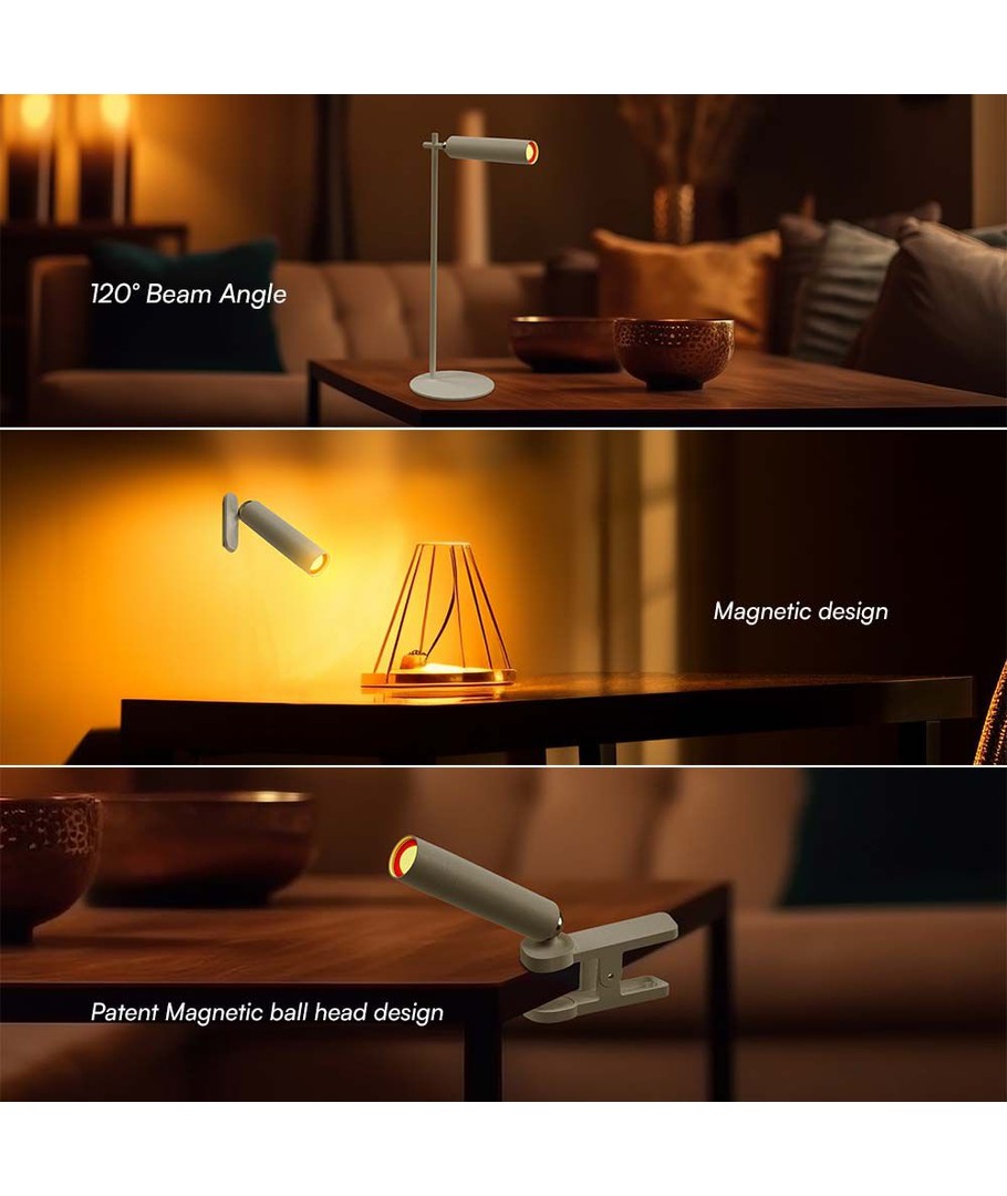 Den magnetiska basen gör det enkelt att placera lampan stabilt på olika ytor, och den kompakta designen gör den lätt att flytta och justera efter behov. Idealisk för skrivbord, filtarbete, eller som läslampa.
